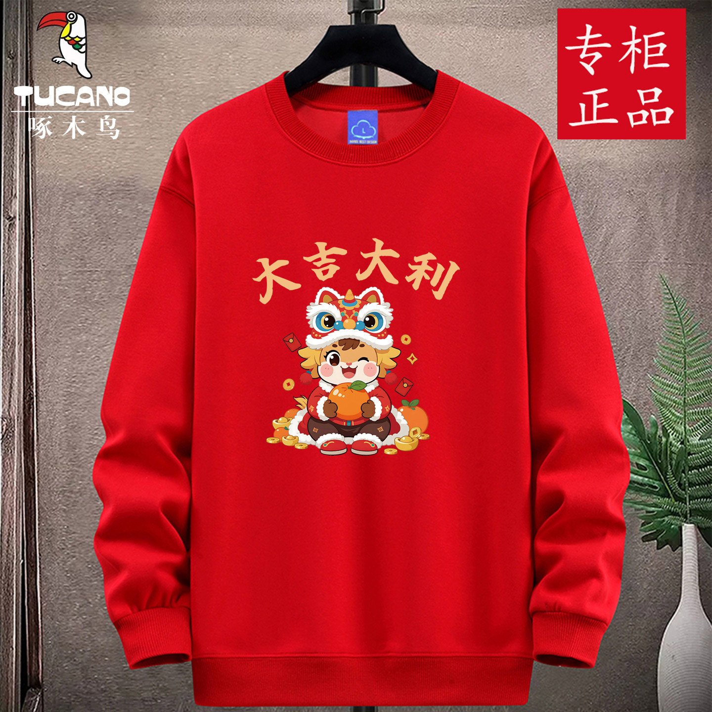 首页> 男装> 啄木鸟马年本命年大红色圆领卫衣男套头打底衫加绒外套春秋冬团购