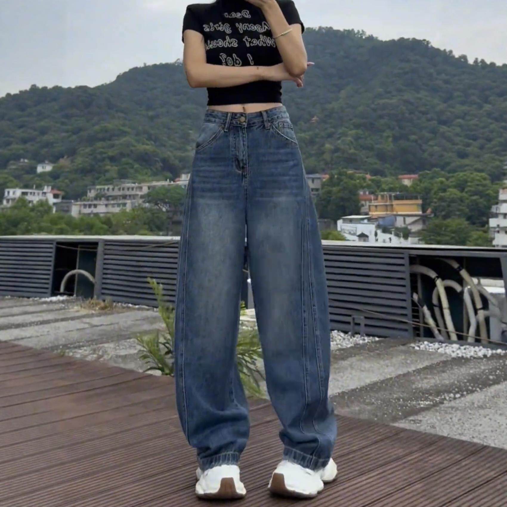 大码加绒弯刀牛仔裤女秋冬季2025新款阔腿裤胖mm显瘦美式直筒裤子