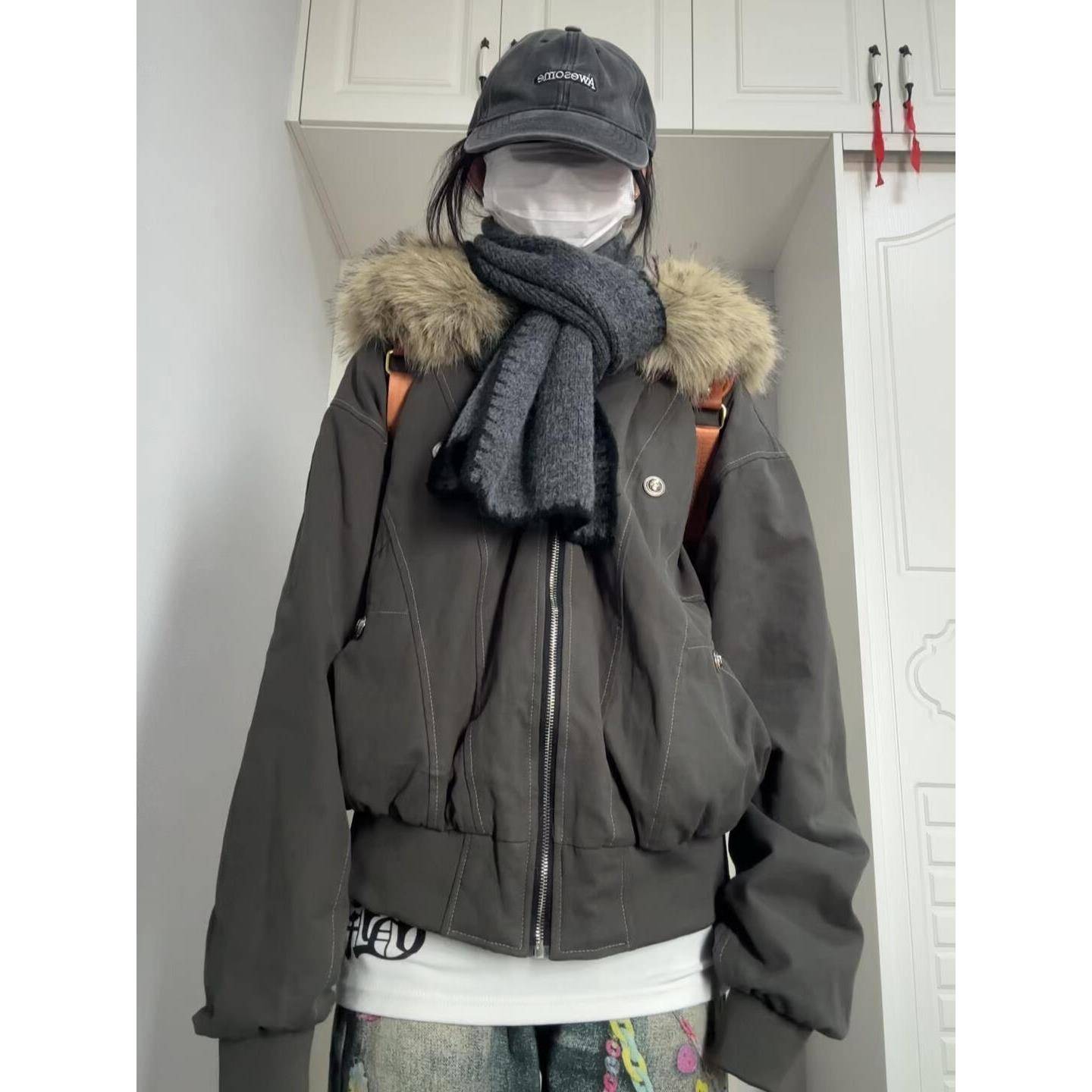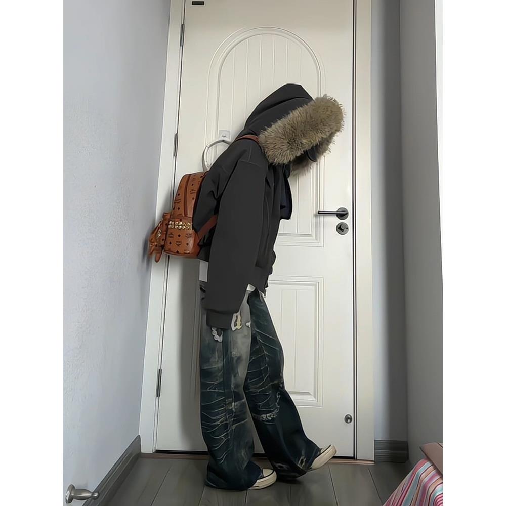 美式复古座山雕外套女款秋冬派克服加绒加厚短款夹克棉服2025新款