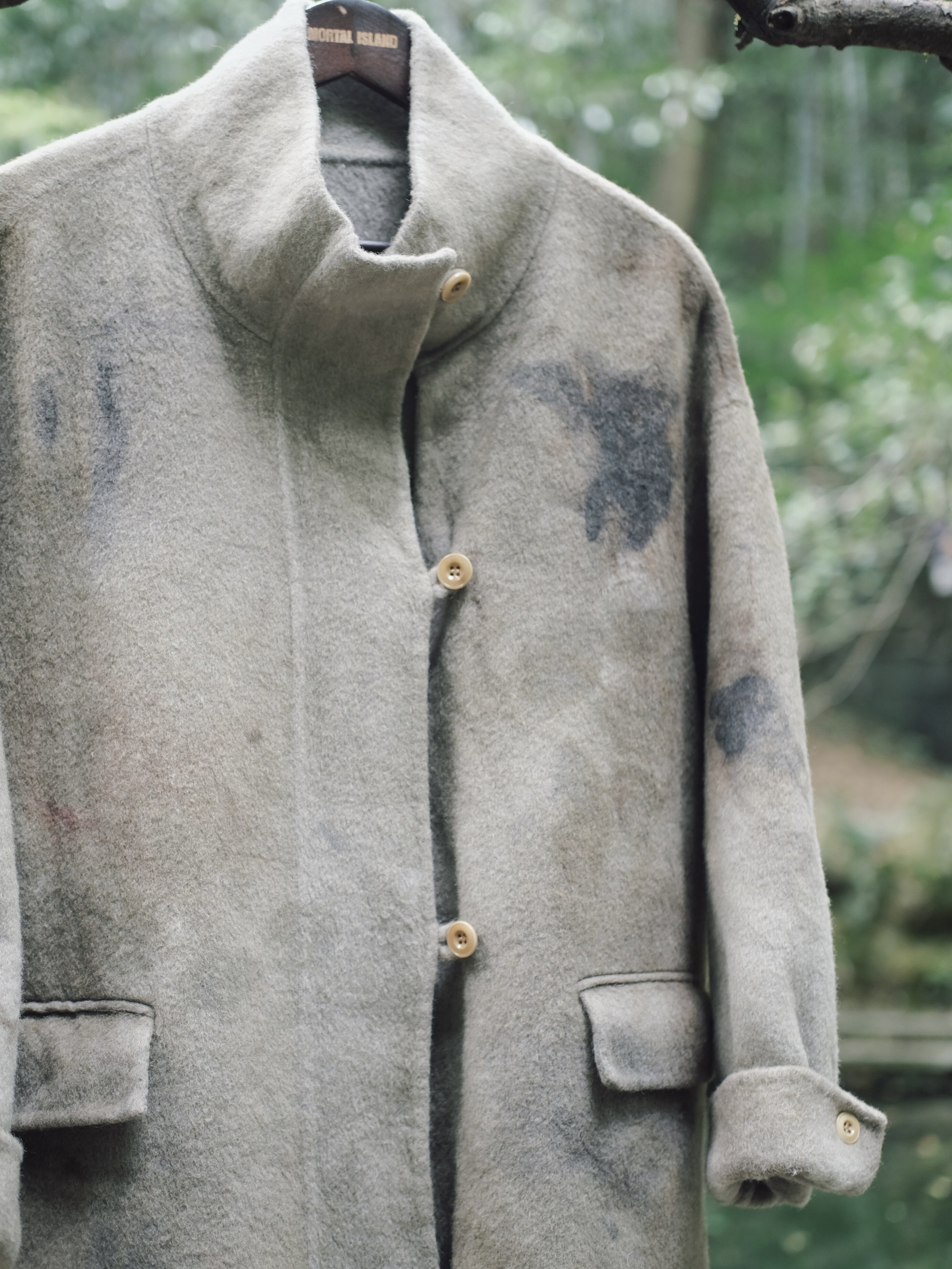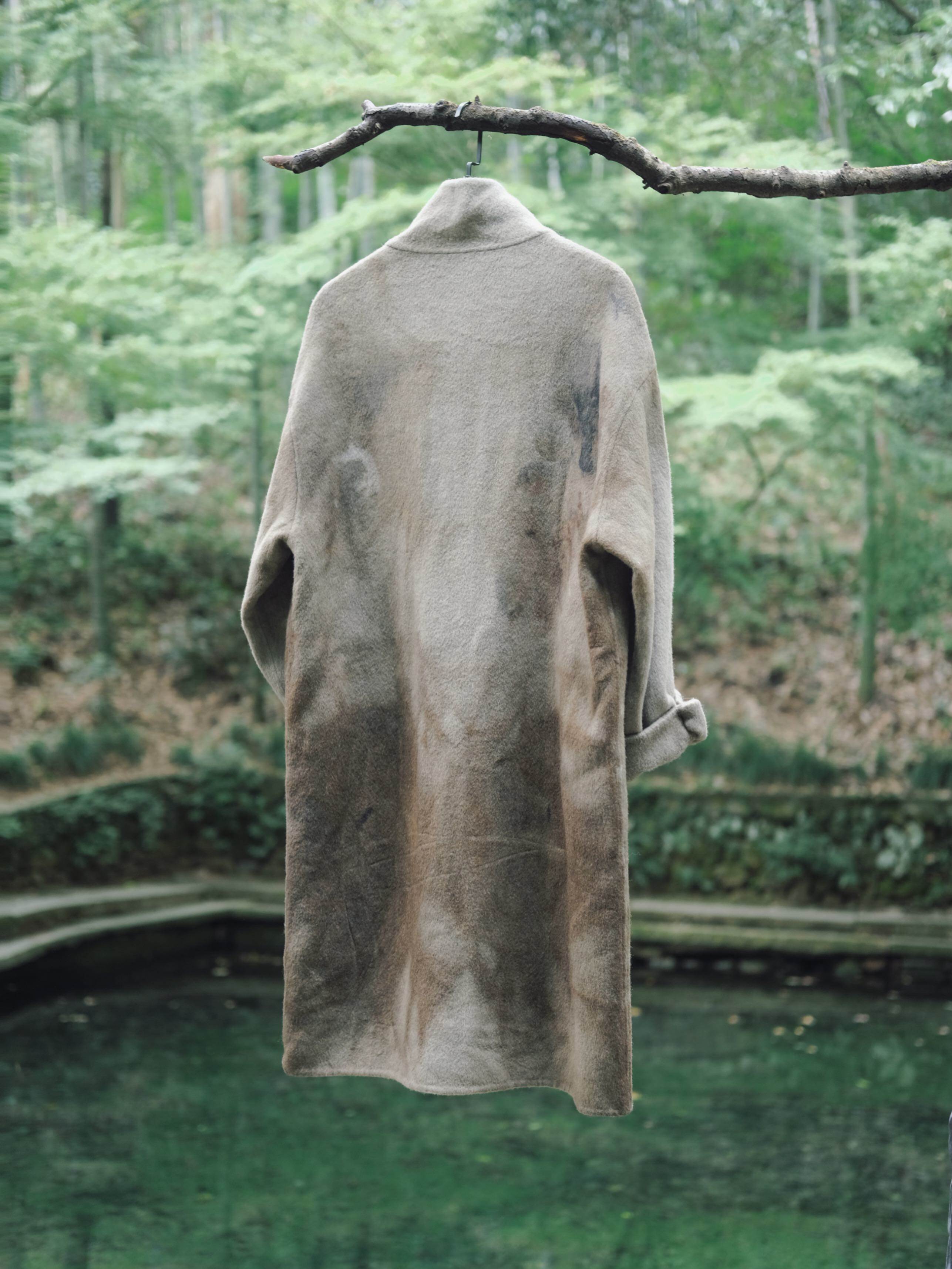 凡人岛植物染复古侘寂风文艺宽松中长款大衣女休闲外套