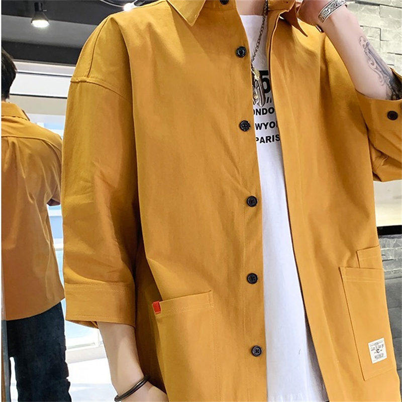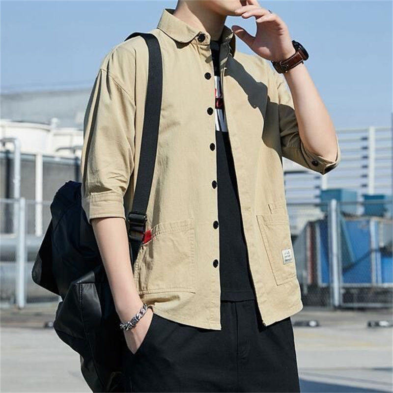 1901工装衬衫新款韩版男士全棉中袖衬衣青少年时尚个性百搭潮外套