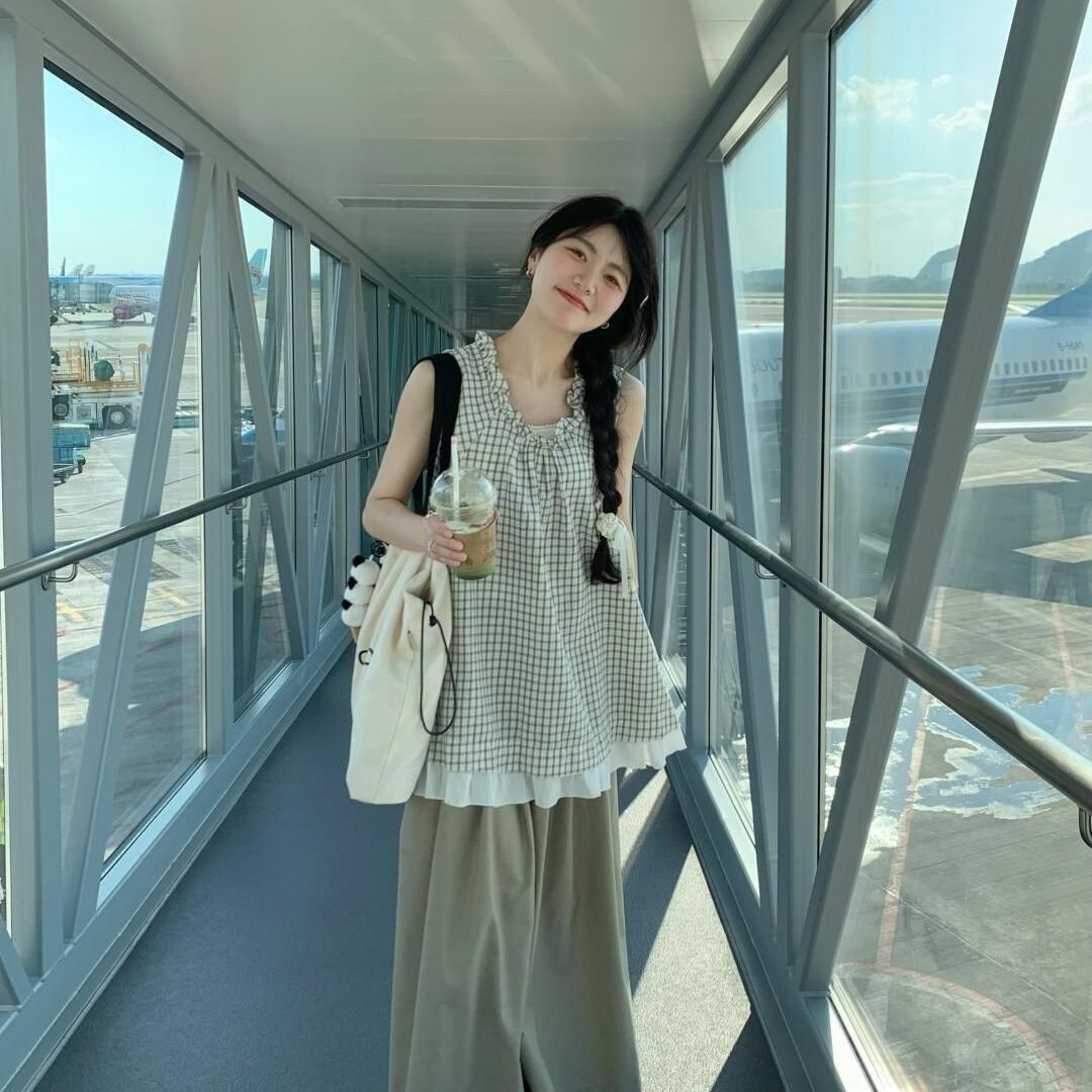 文艺复古绝美套装女夏季无袖花边宽松衬衫阔腿长裤韩系穿搭一整套