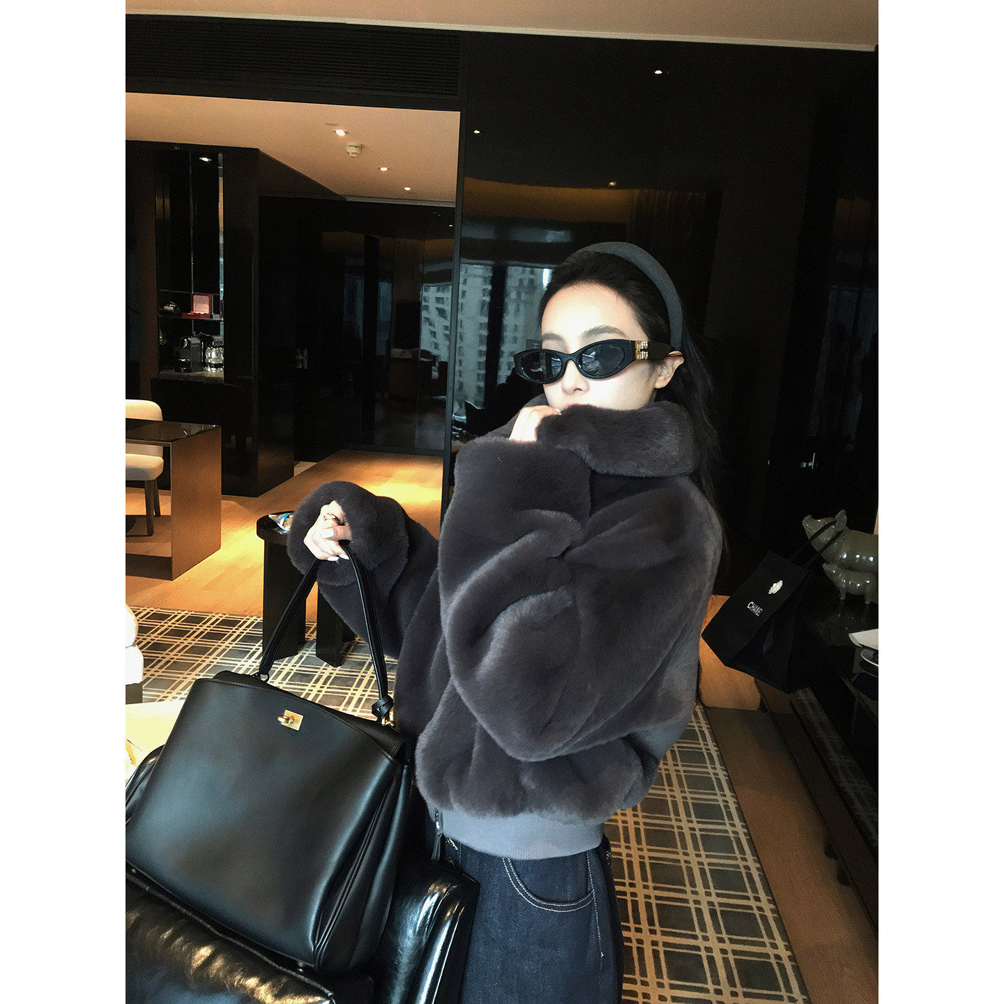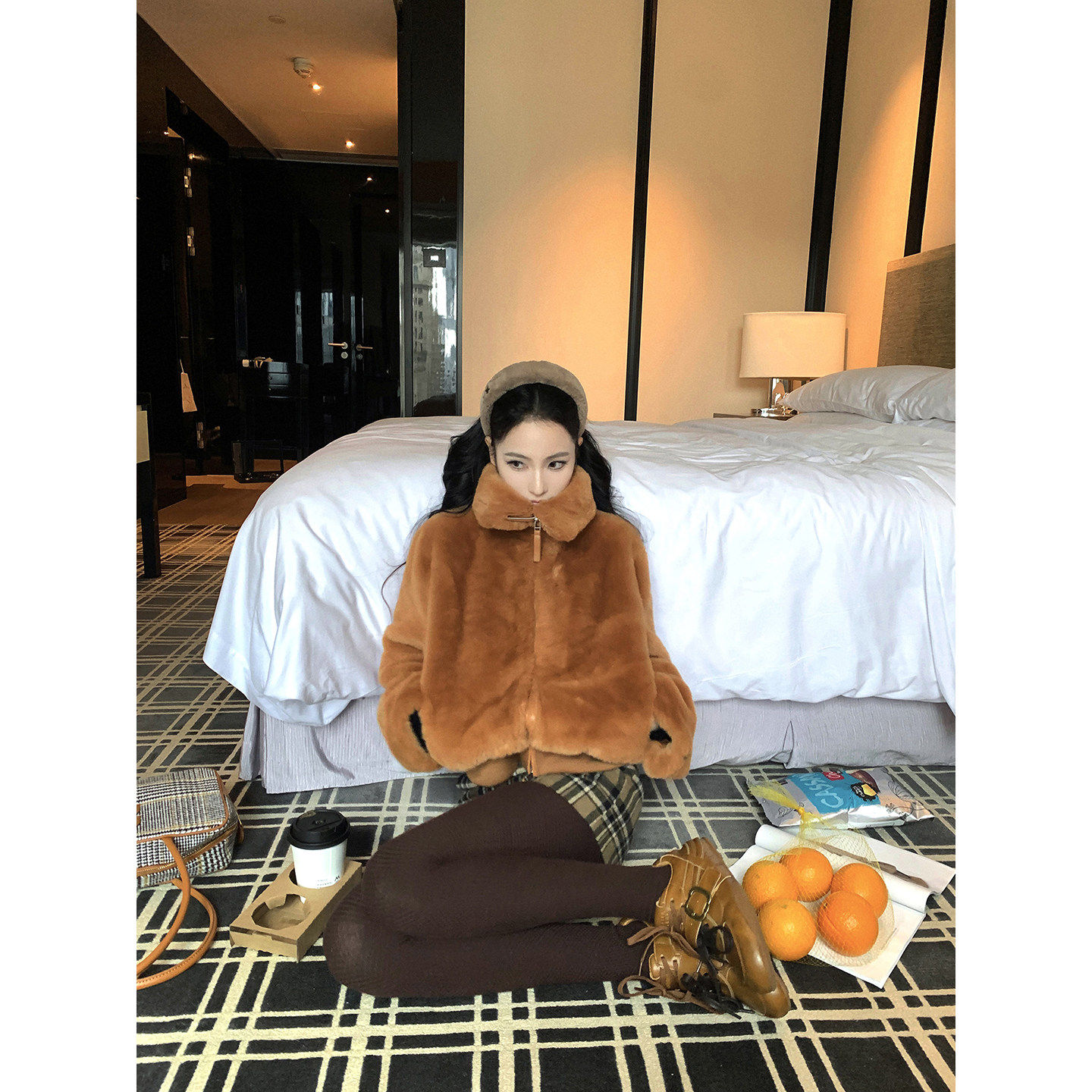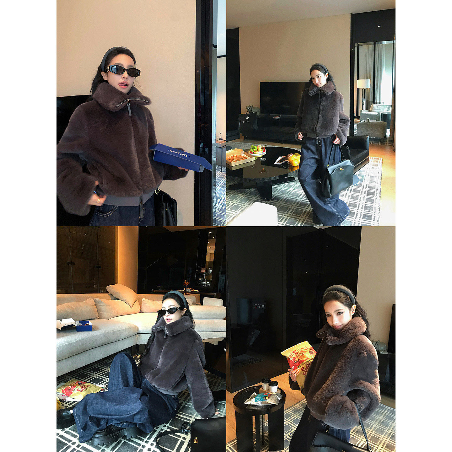 Wuu2sweet 高级感大翻领毛茸茸短外套女秋冬新款保暖上衣