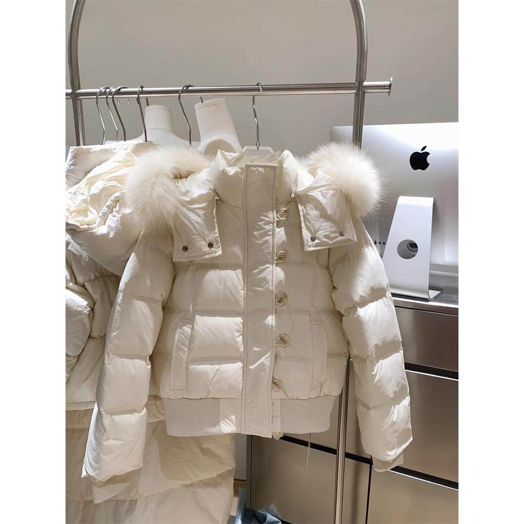 网图网红尹千金同款芬兰雪境纯色连帽大毛领棉袄学生外套棉服