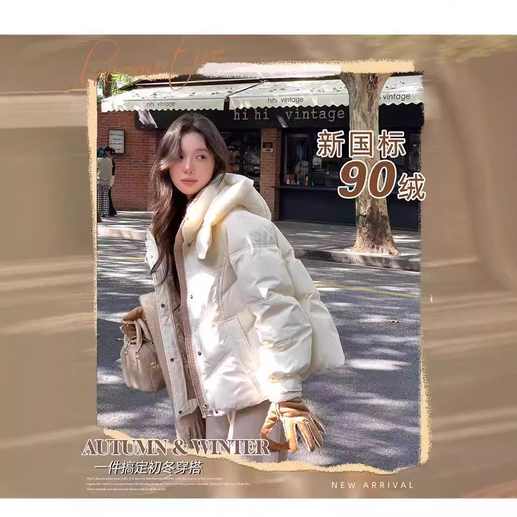 白鸭绒羽绒服冬季2026年新款短款小个子加厚时尚高端洋气连帽外套