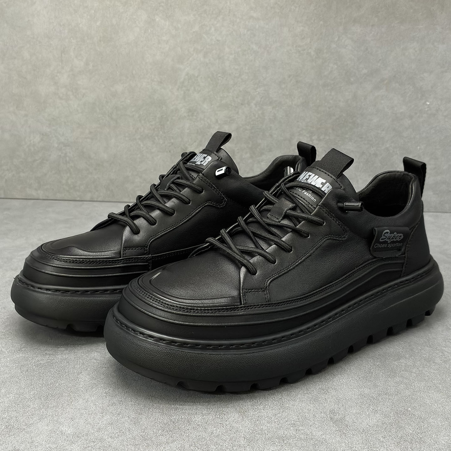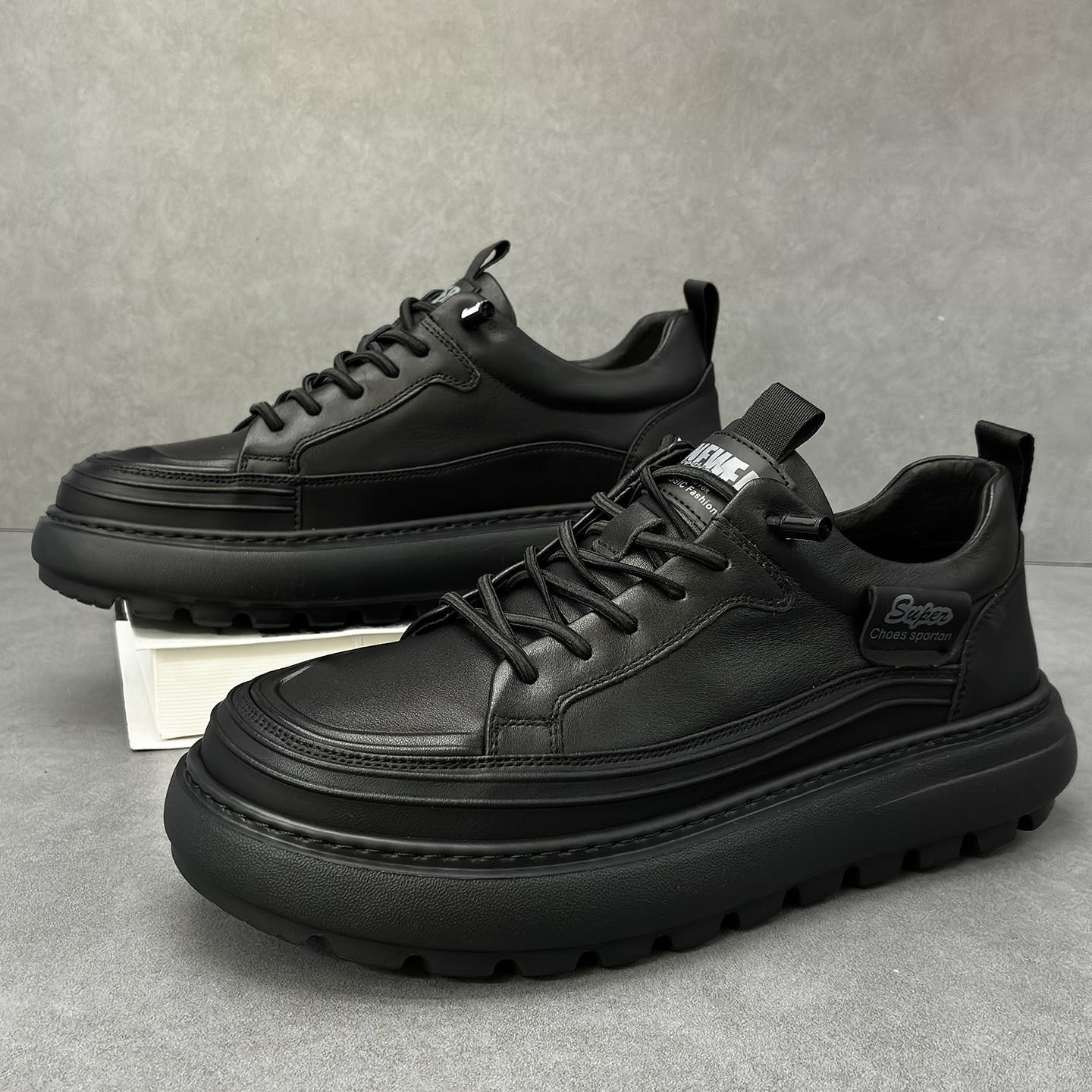 高端男士2025冬季新款真皮男鞋头层牛皮厚底舒适一脚蹬休闲皮鞋