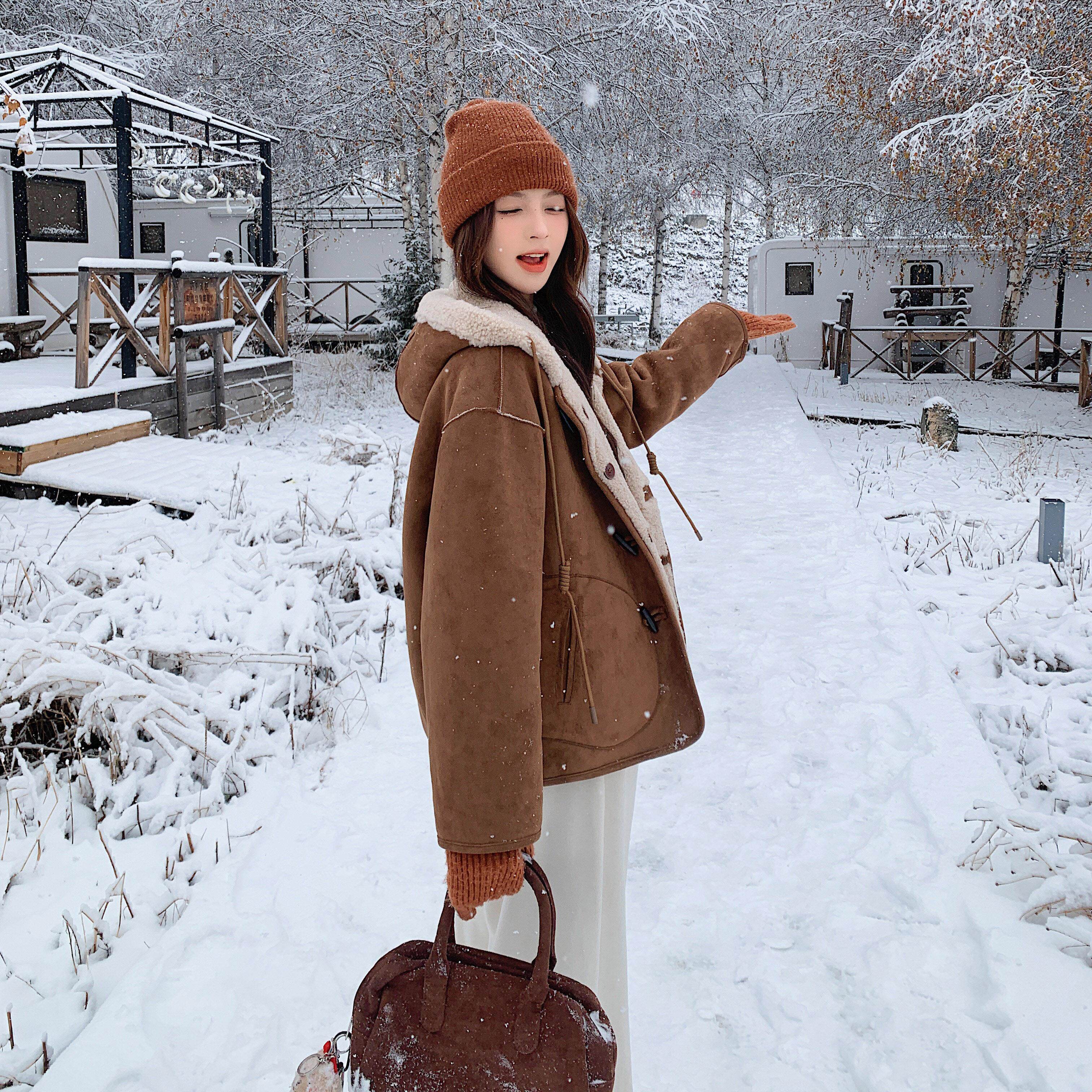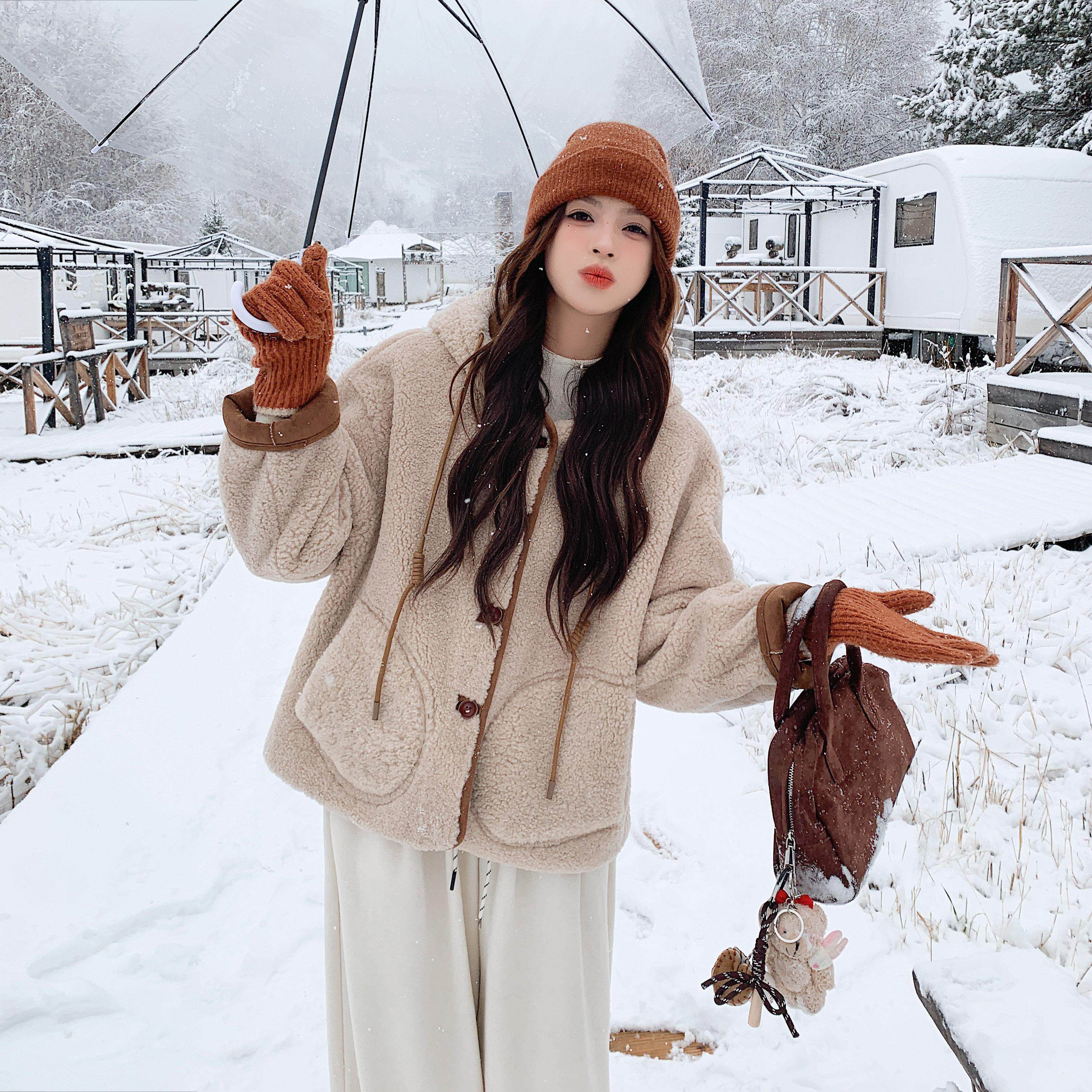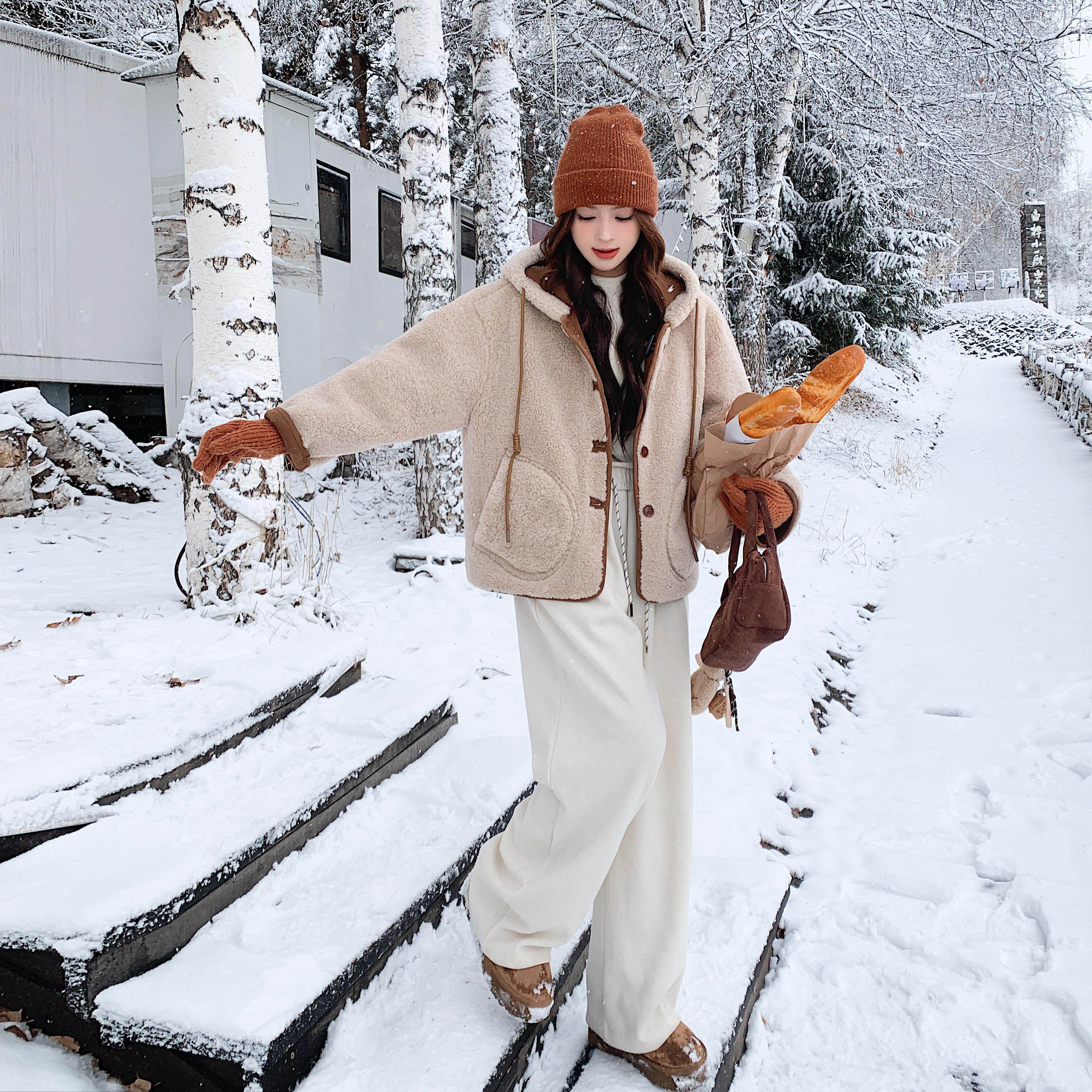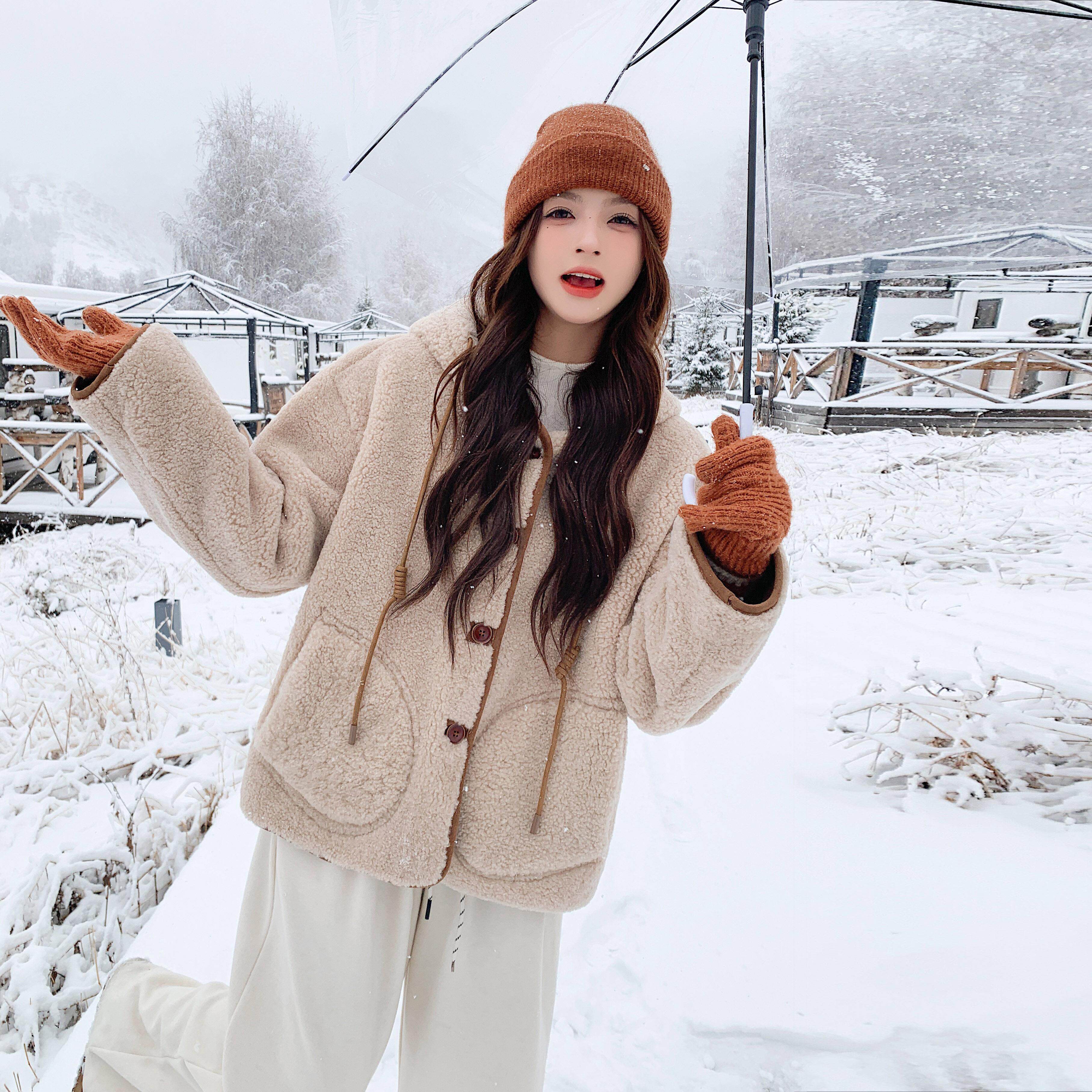 米杏色双面穿羊羔毛外套女冬季加绒加厚2025年新款超好看皮毛一体