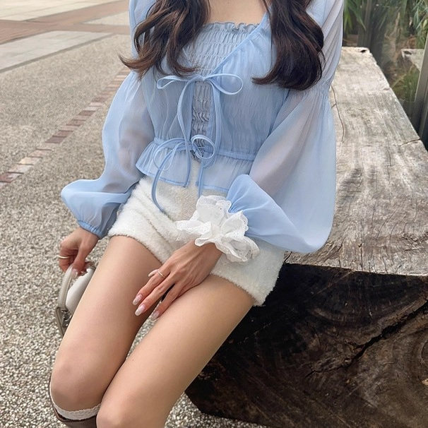 D08028日单新款GL花边弹力松紧甜美吊带背心+系带甜美衬衫两件套