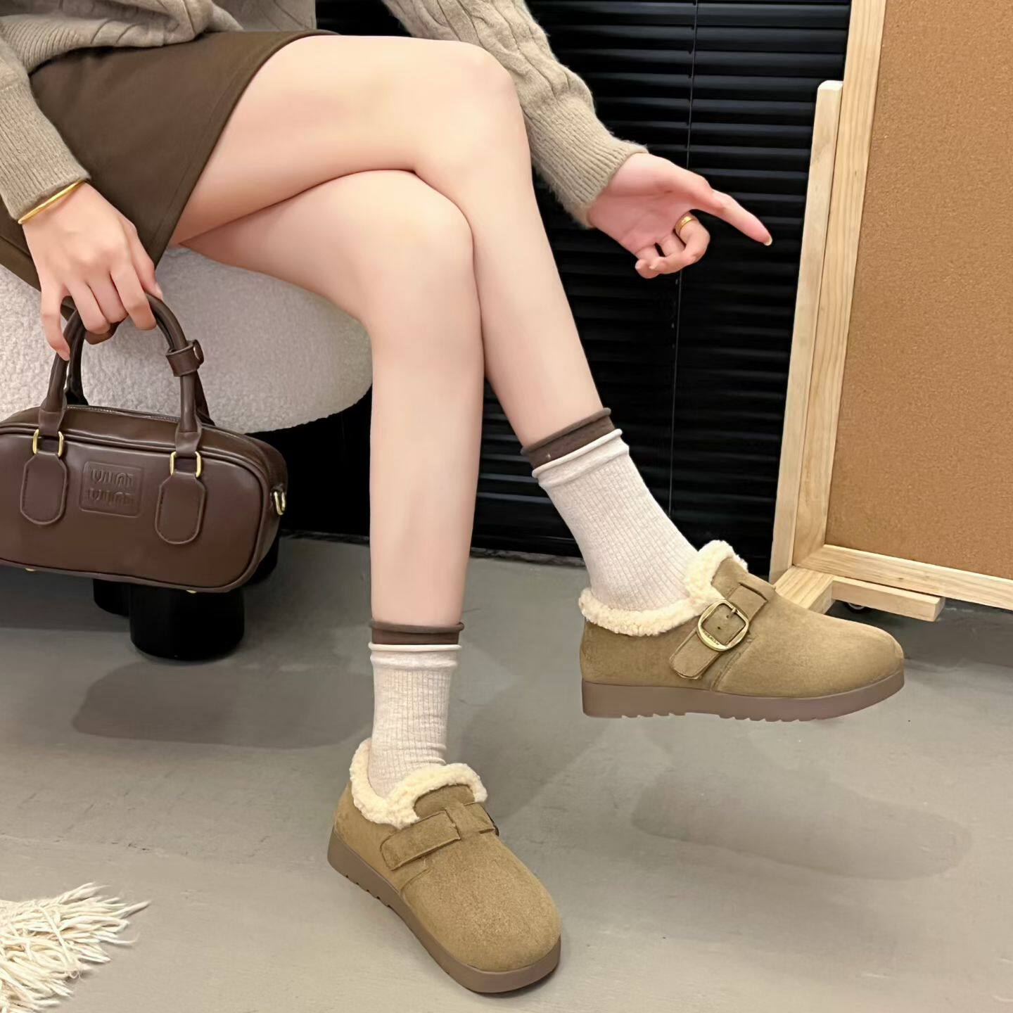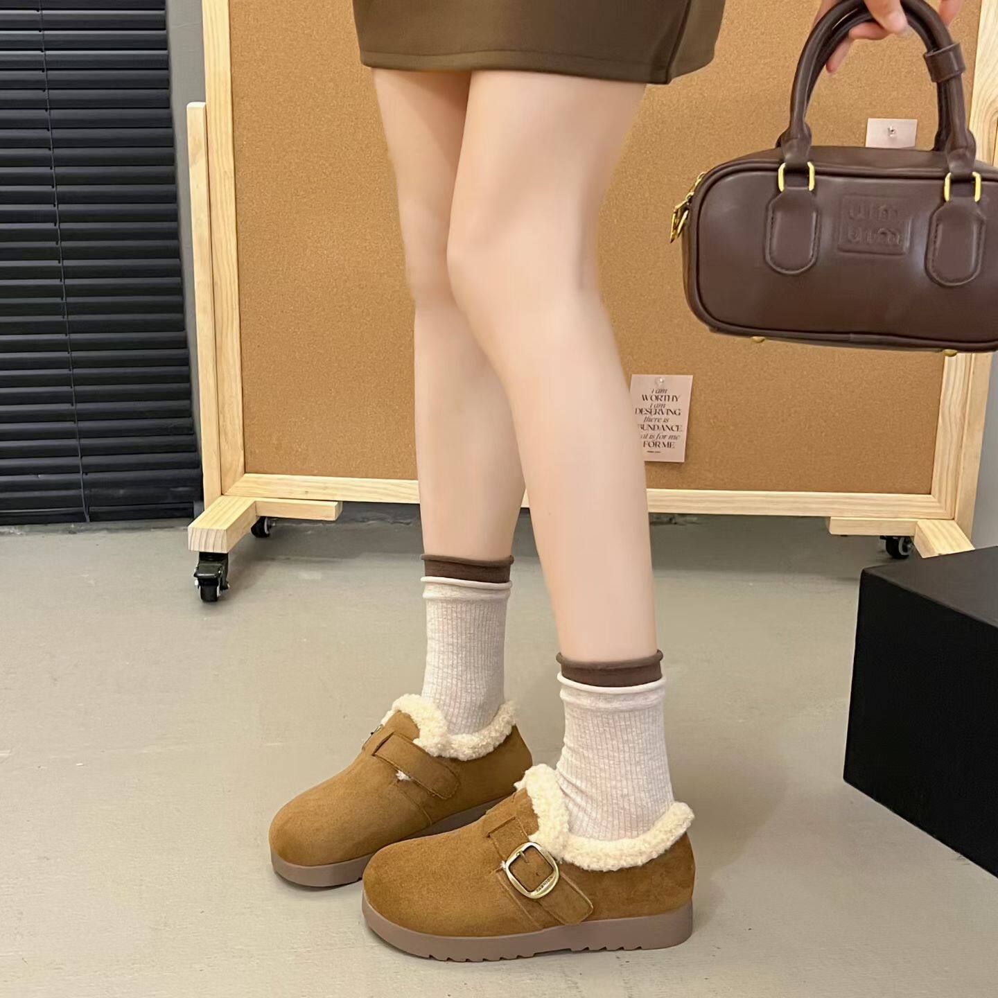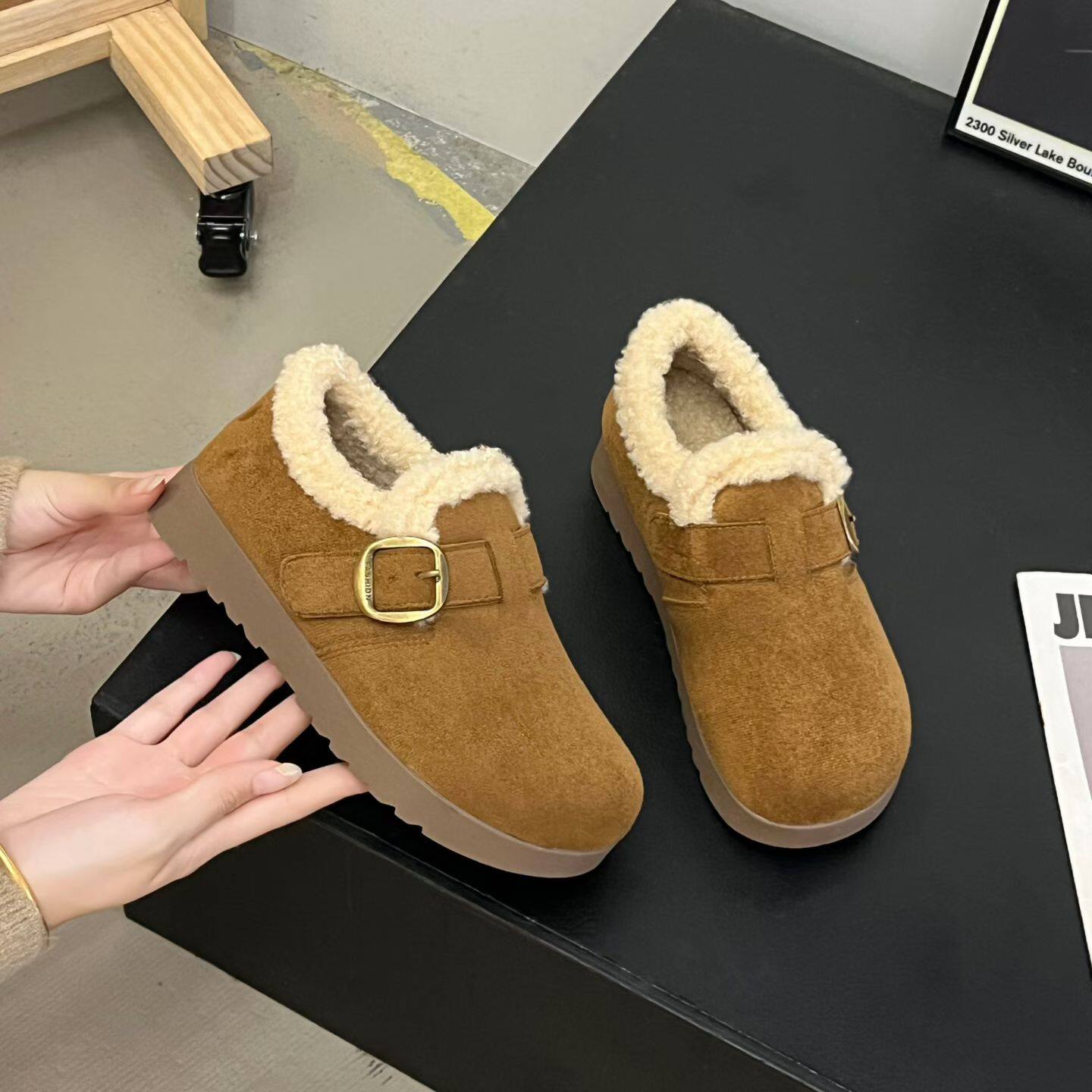 冬季新款8960-8平底勃肯鞋绒面加棉牛筋大底防滑耐磨百搭舒适