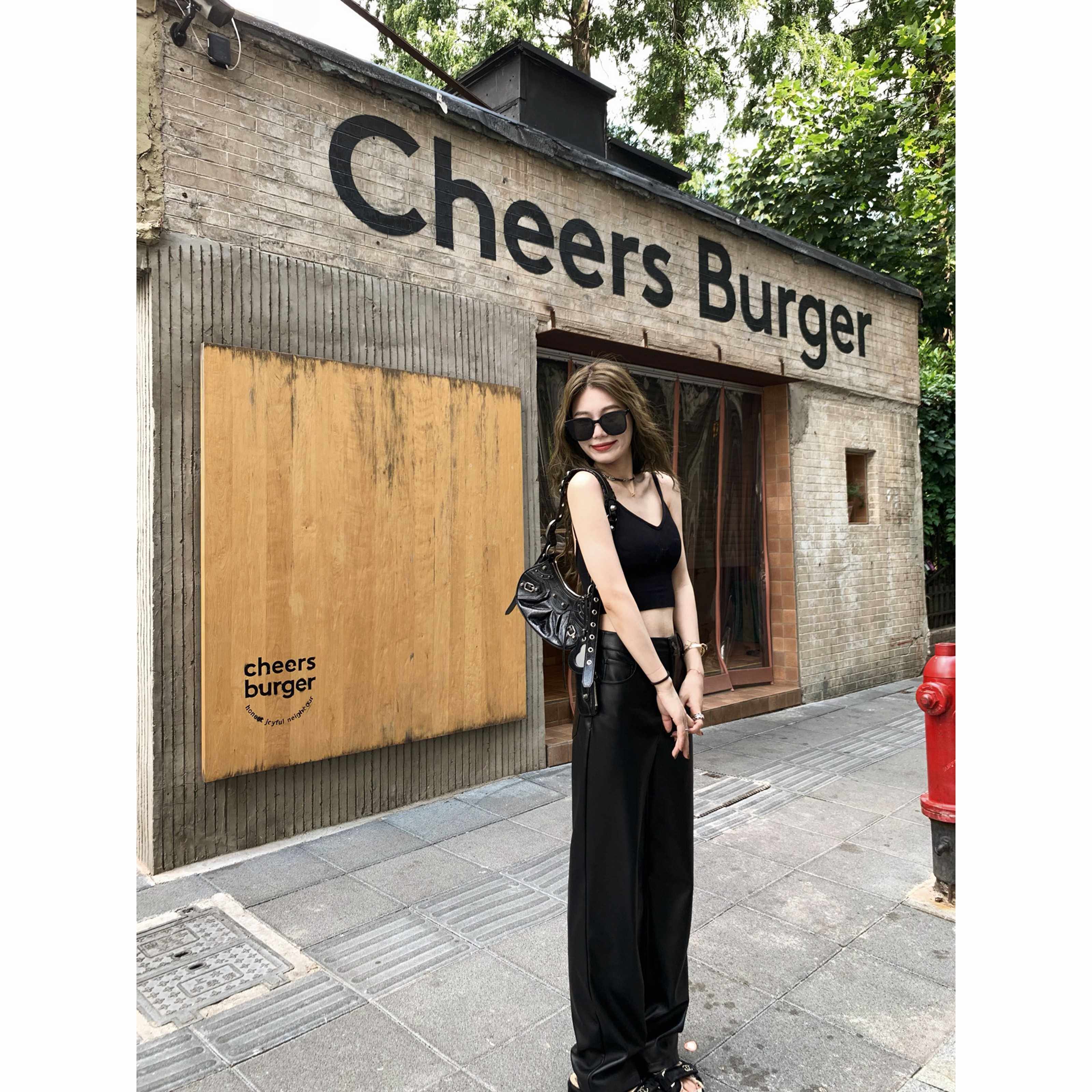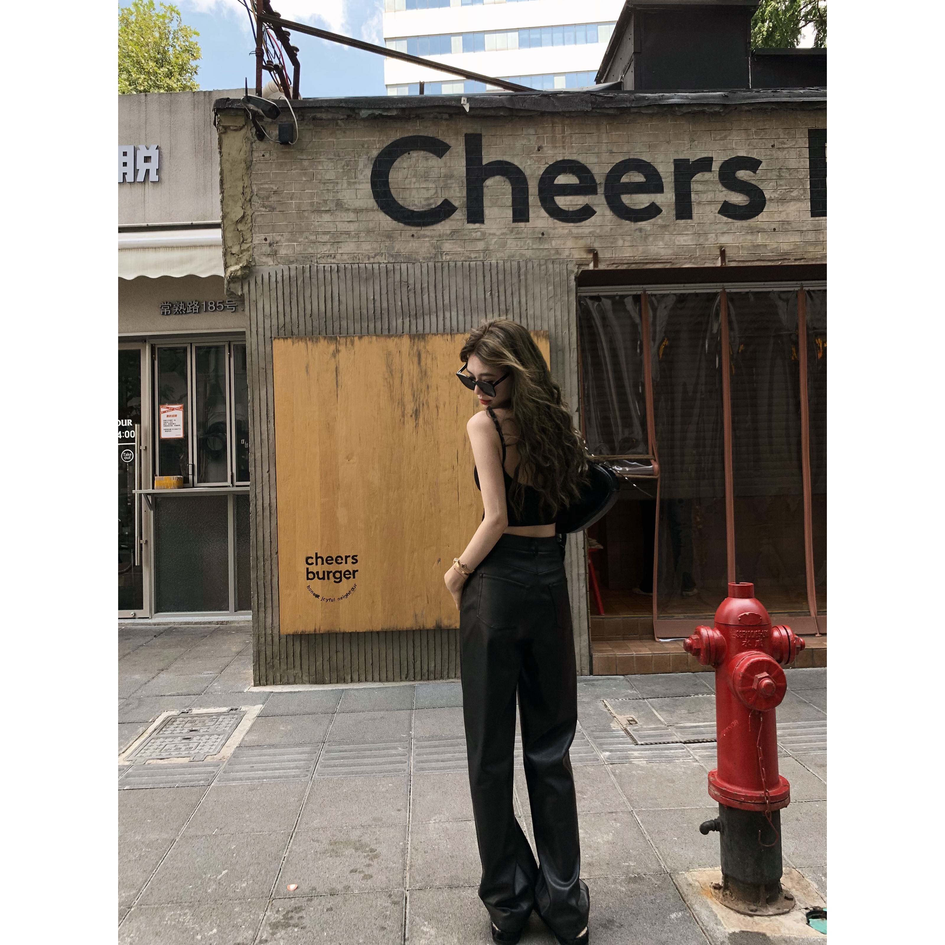 小君君布兰妮 好版型女团皮裤女秋冬新款显瘦显高超模裤黑色长裤