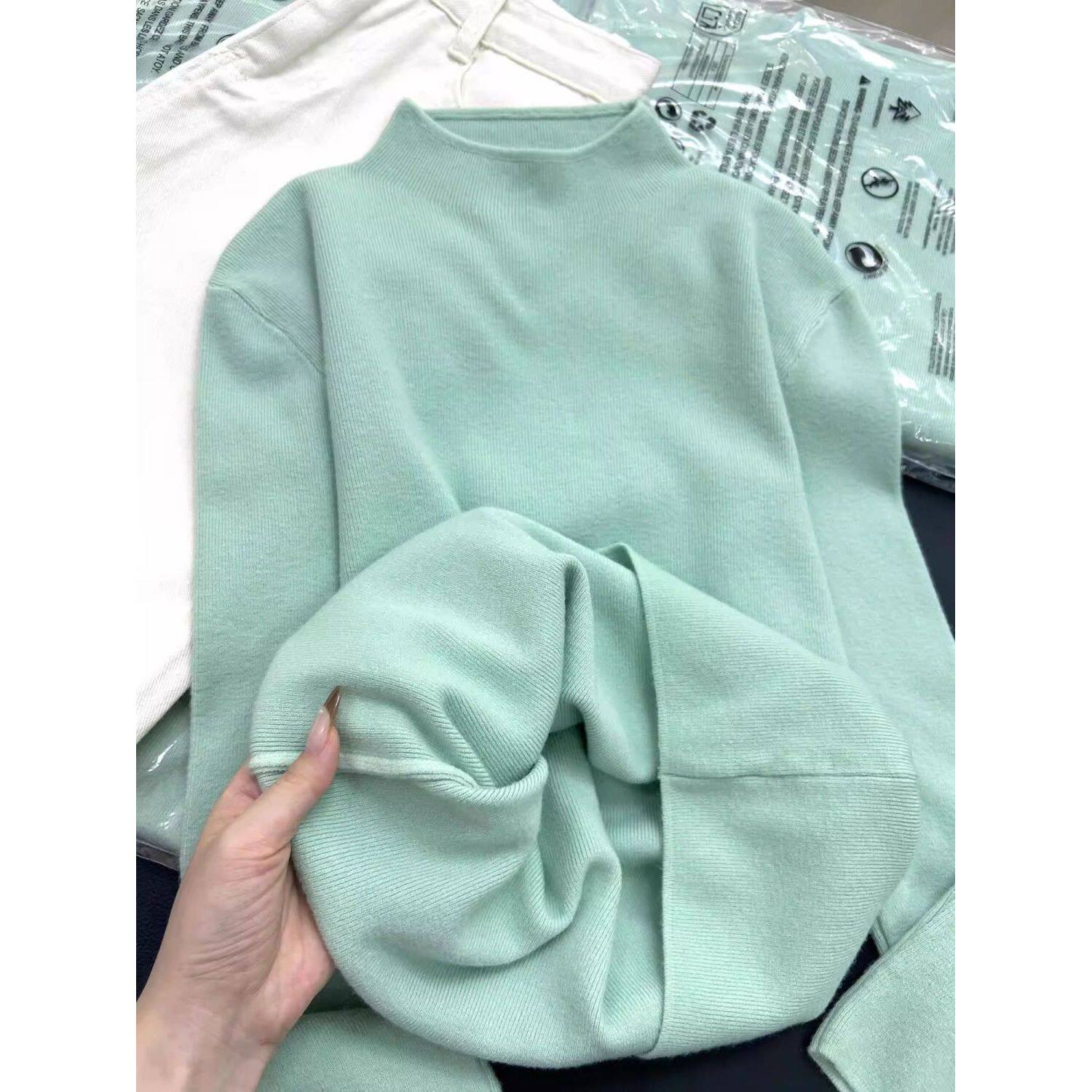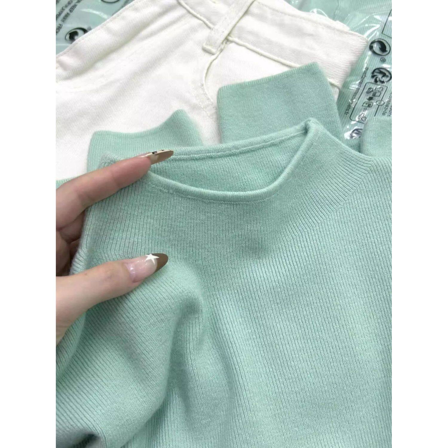 文艺复古清新薄荷绿超显白打底衫女内搭秋冬毛衣半高领针织衫上衣