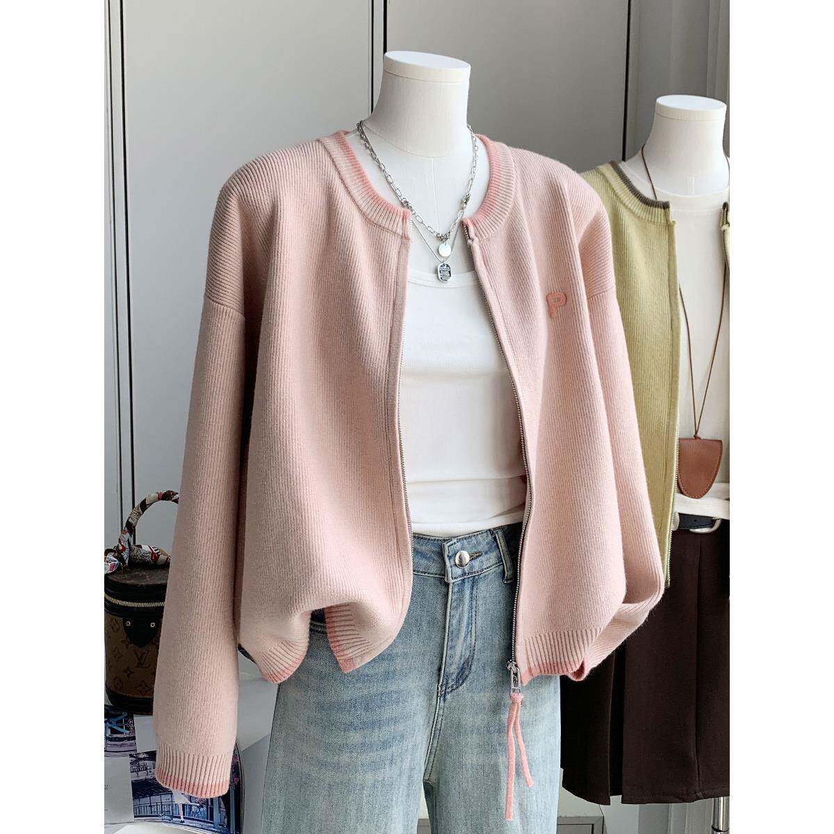 搜絮宽松双链短款B7501287外穿针织开外衫拉女春秋新款字纯色母刺