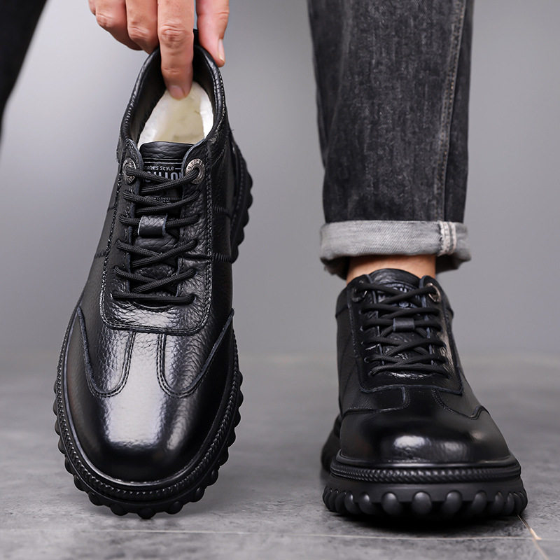 头层牛皮棉鞋男冬季加绒加厚商务休闲爸爸鞋防滑中老年保暖棉皮鞋