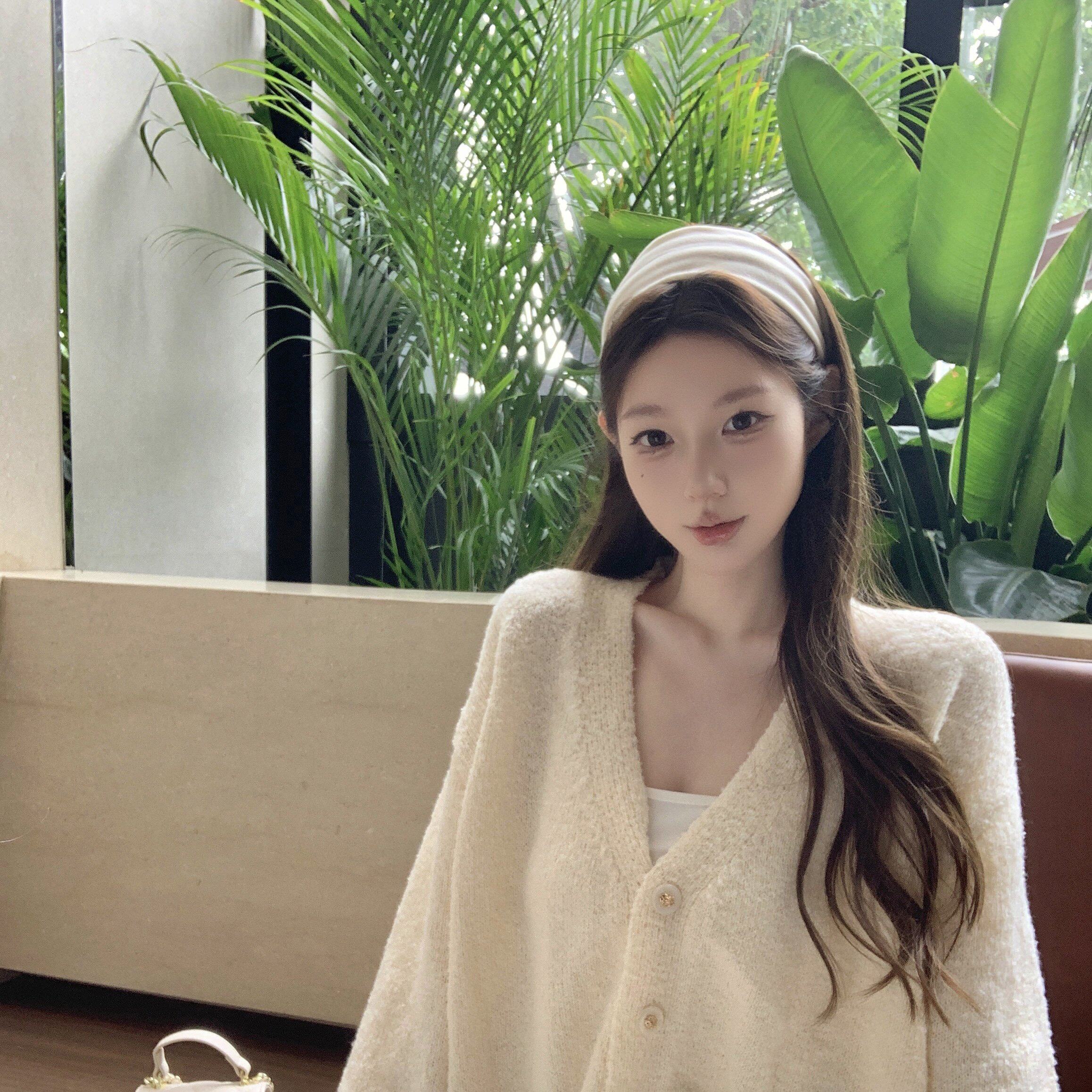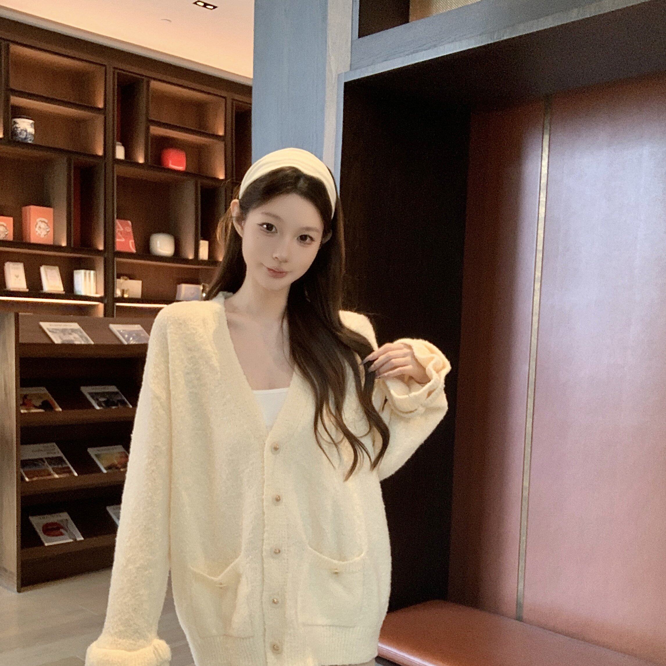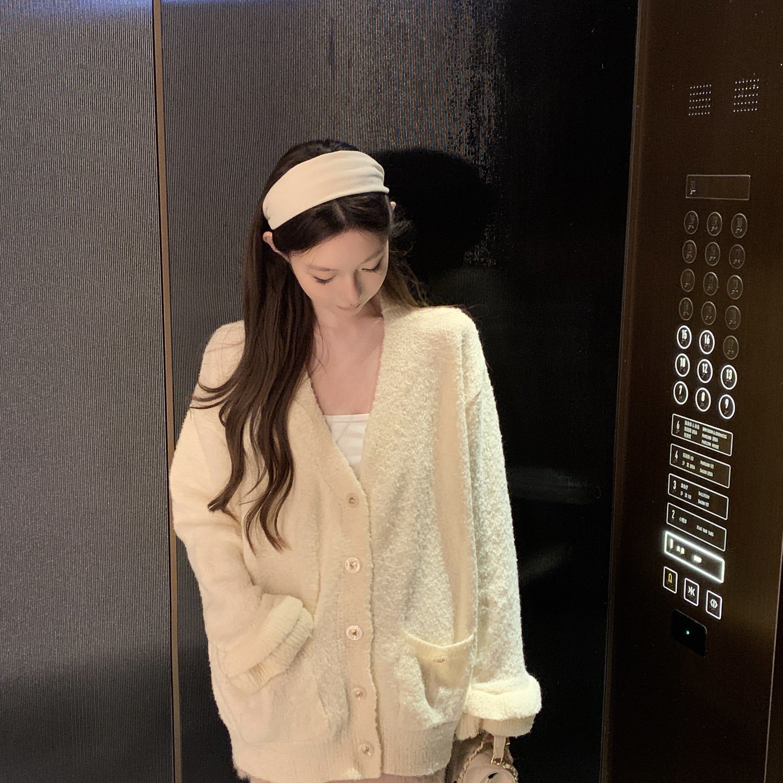 实拍实价 法式小香风V领针织开衫女秋冬宽松显瘦慵懒气质长袖毛衣