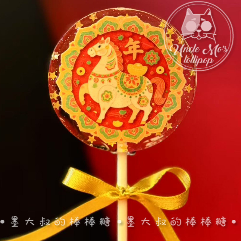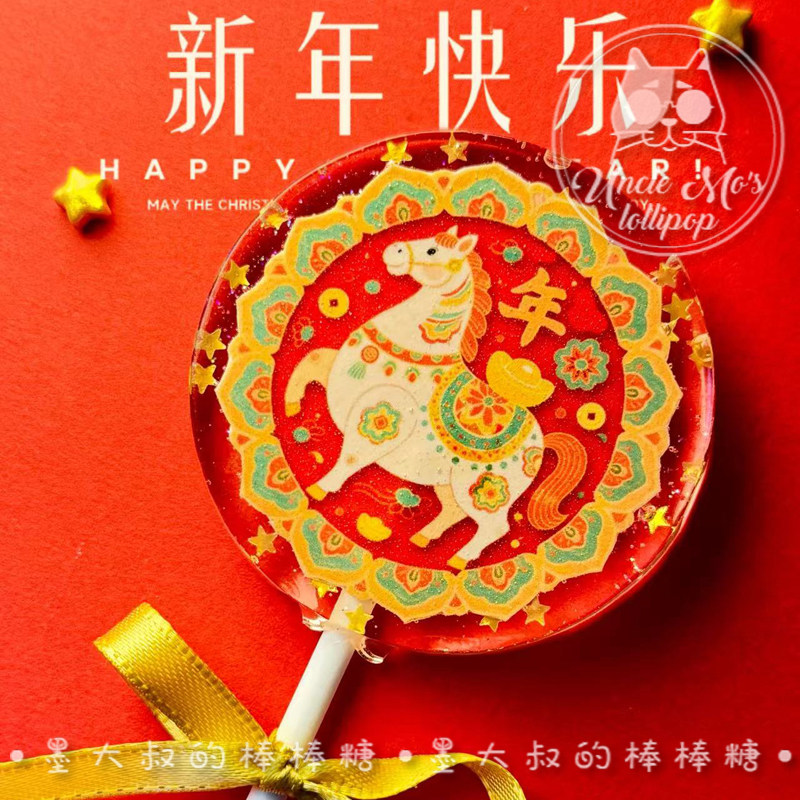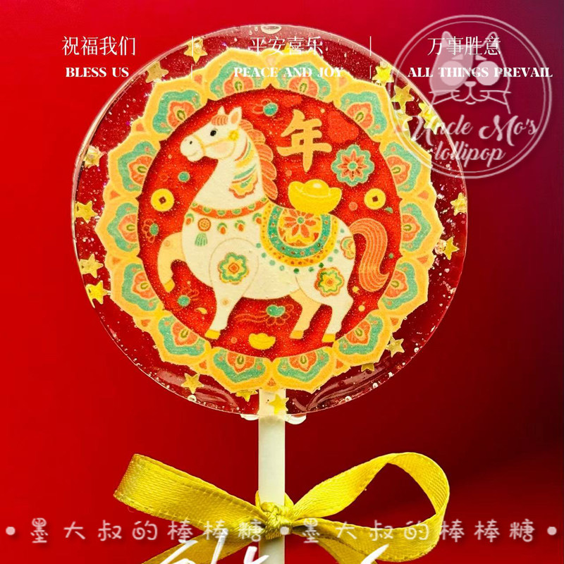 花环马年小马2026年会棒棒糖礼物可定制创意网红儿童糖果0糖0脂