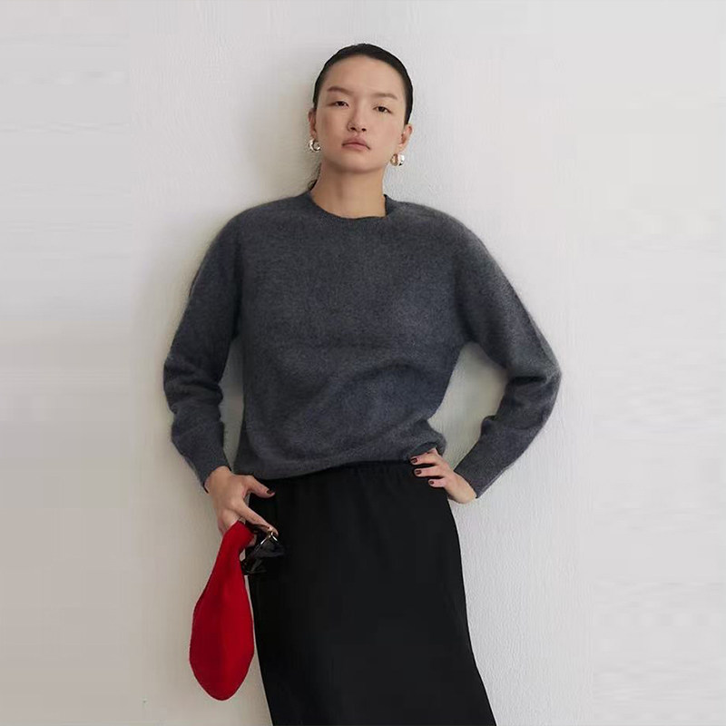 【琳琳粉丝专享】圆领金银丝蚕丝拉绒衫女宽松保暖百搭针织毛衣