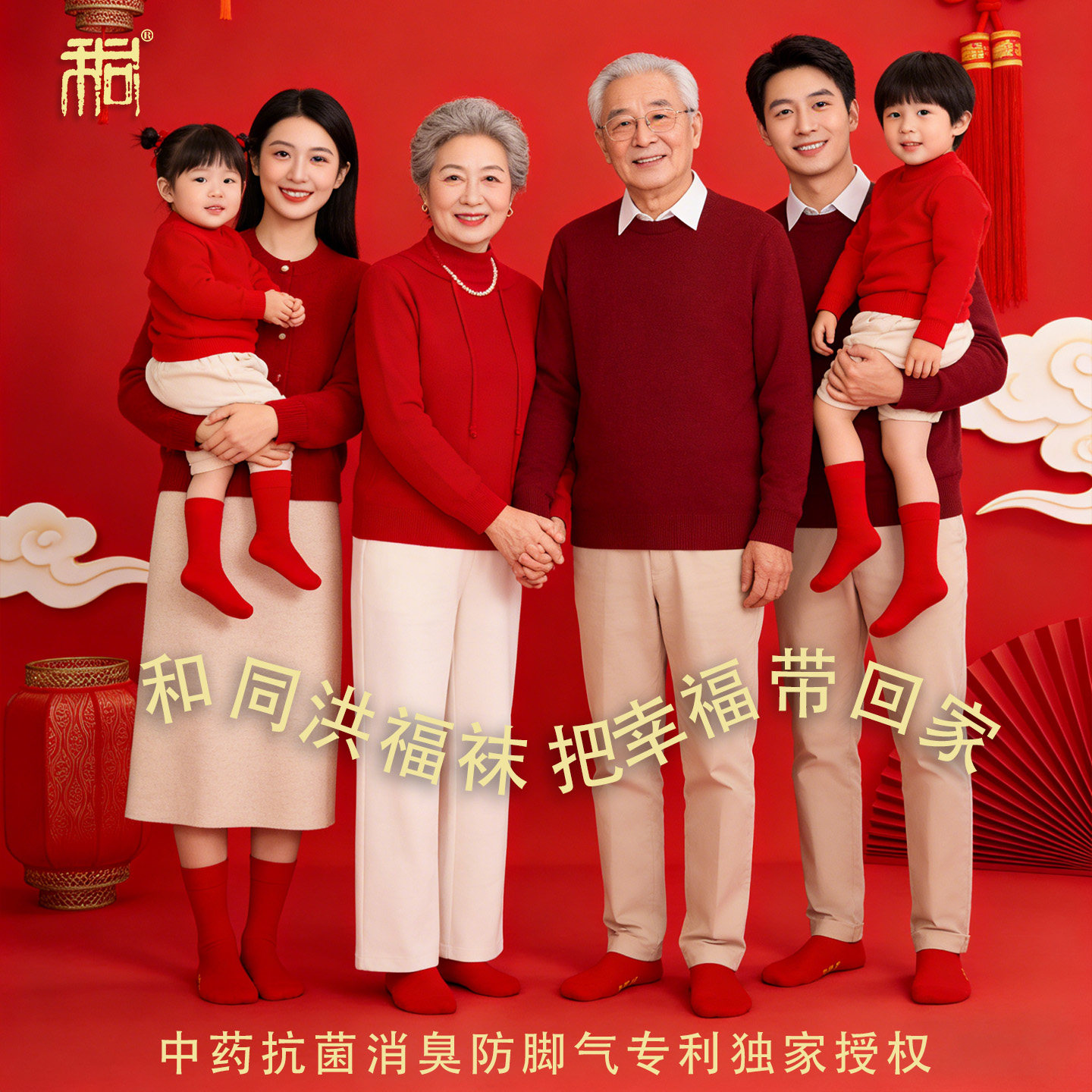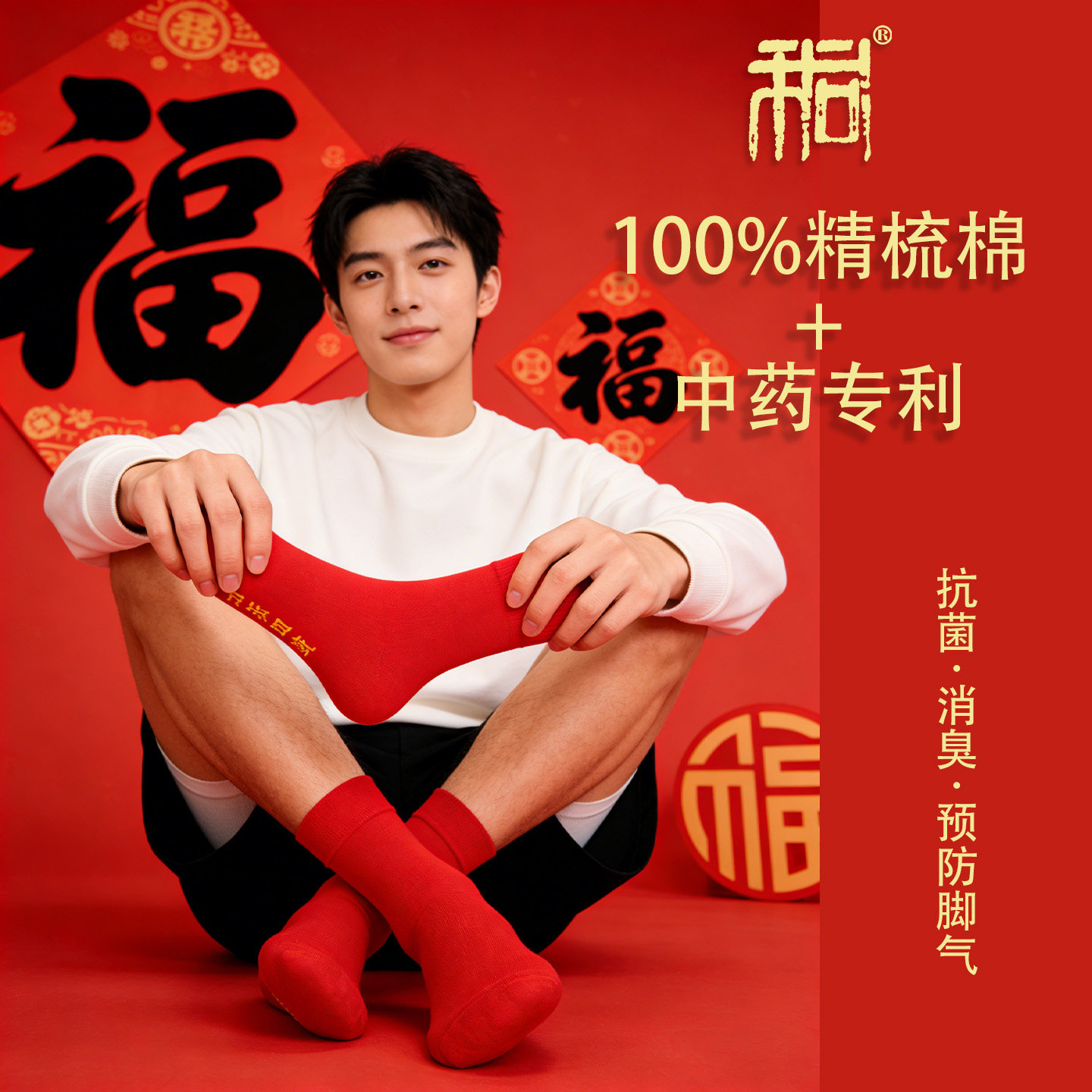 秱本草2026马年本命年红袜子男女士纯棉红色中筒袜秋冬结婚礼盒装