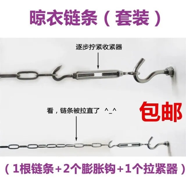 304不锈钢晾衣服晒被子链条 防风防滑防生锈 阳台晾衣链钢丝绳