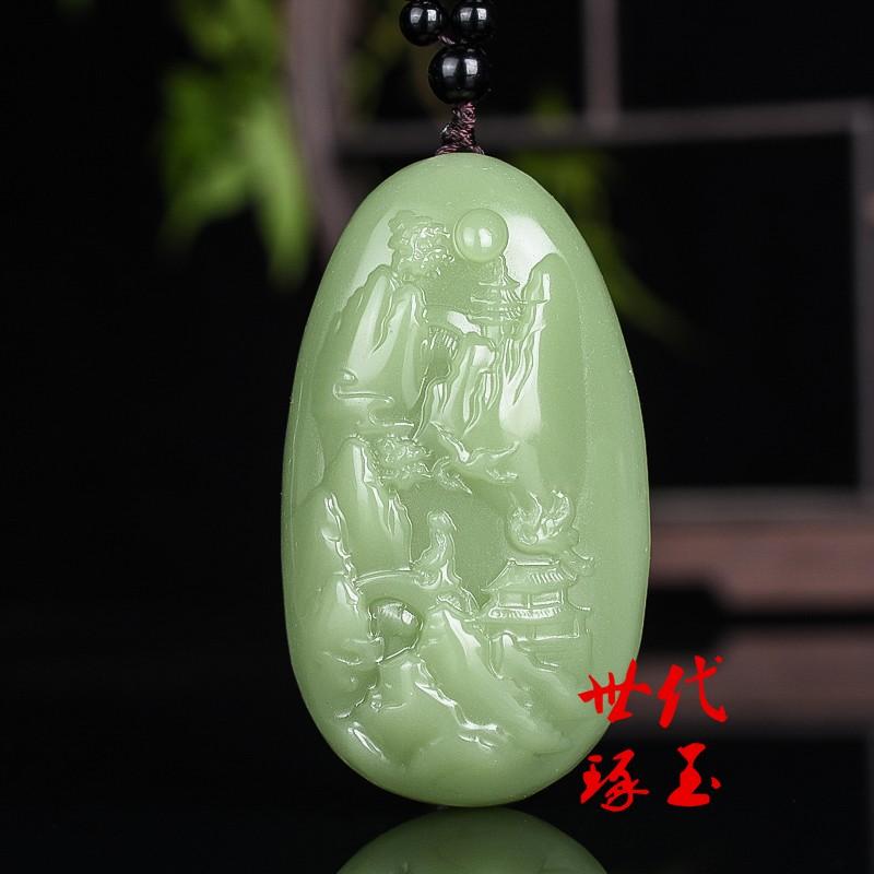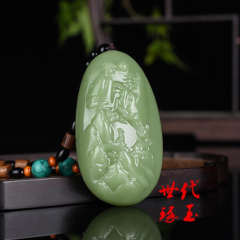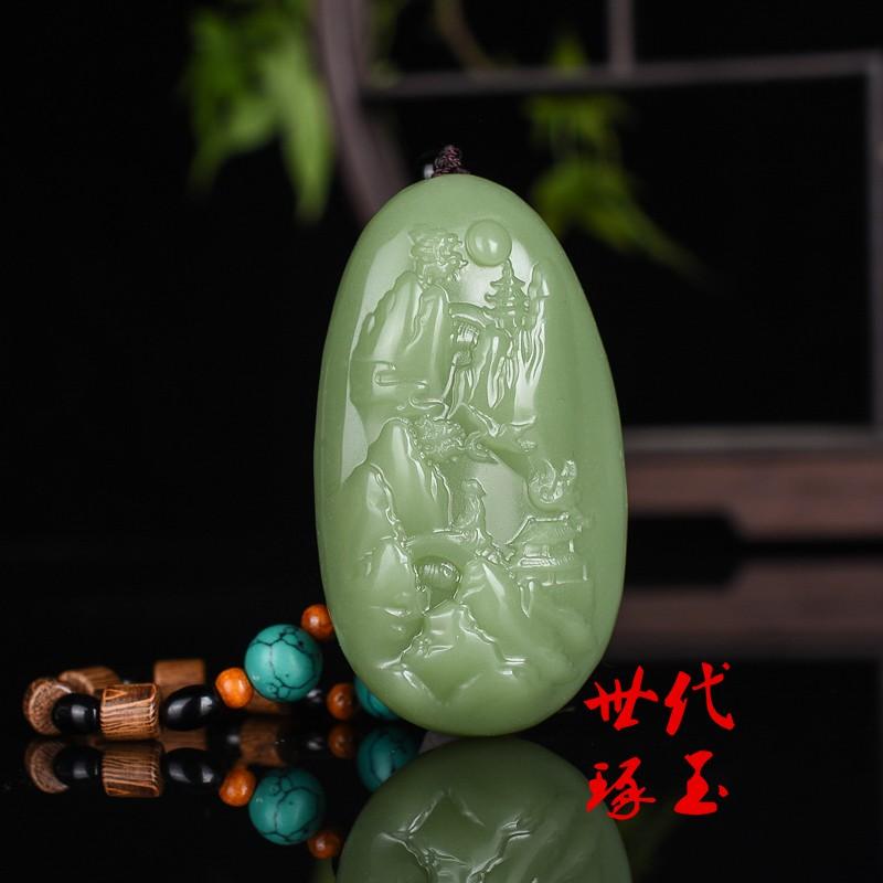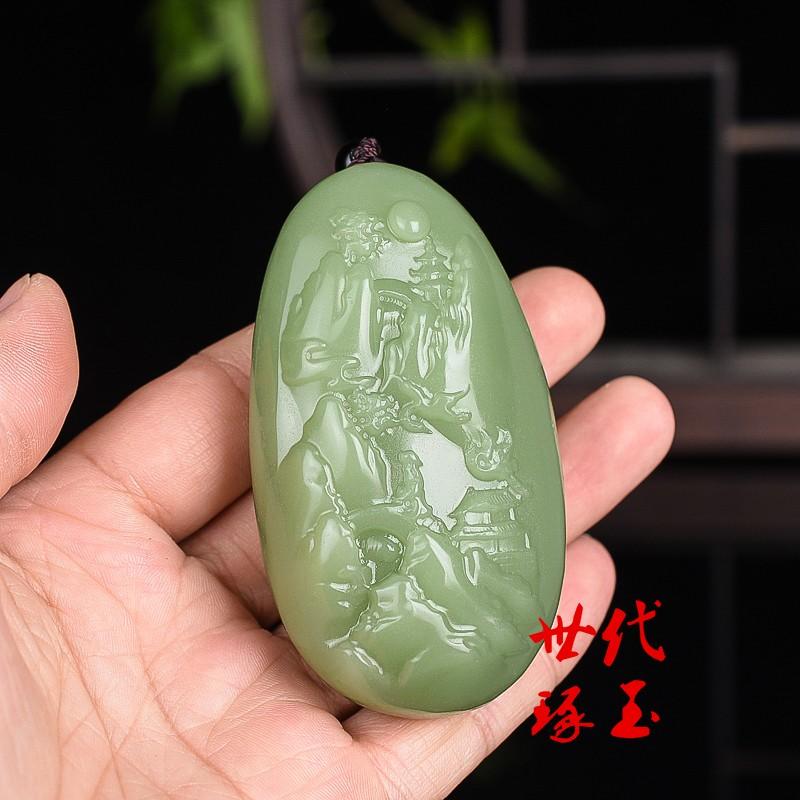 新疆和田玉青白玉山水意境把件天然玉石山水把玩件青玉风水手玩件