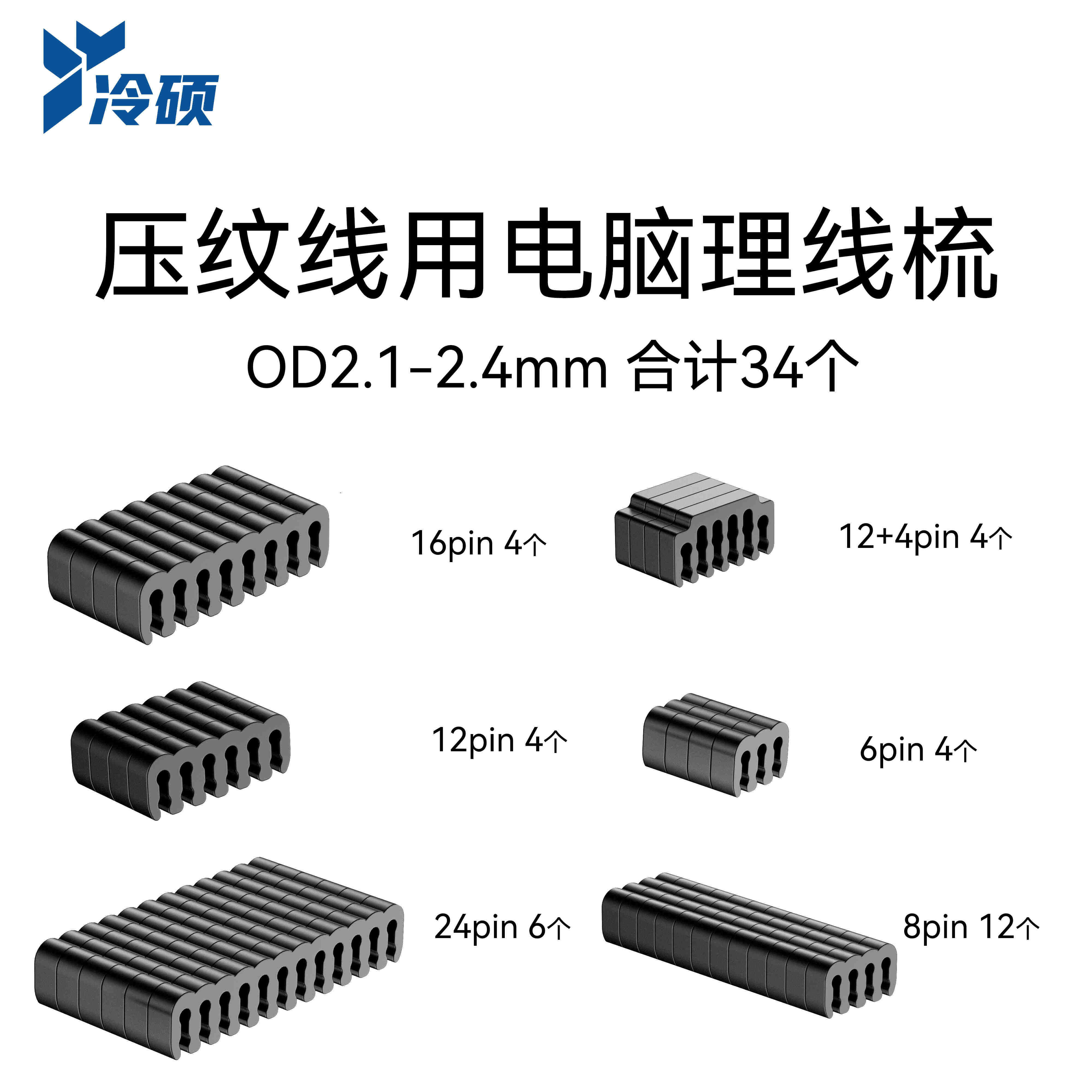 冷硕 压纹线理线梳子电脑电源线透明理线器模组线尼龙编织线