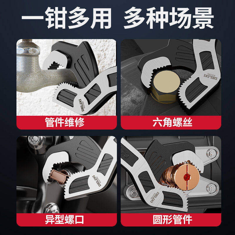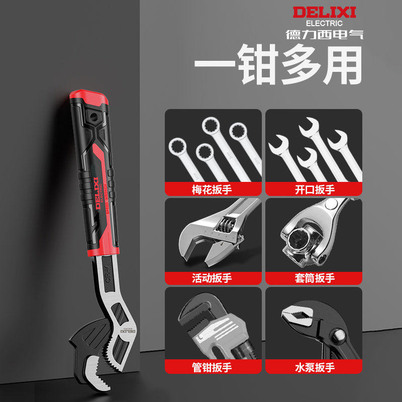 德力西万能扳手多功能扳手万用管钳工具套手快速开口自锁活动