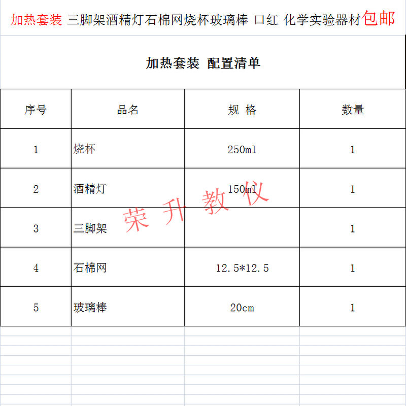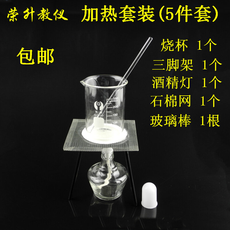 。加热套装烧杯250ml三脚架酒精灯石棉网玻璃棒口红化学实验器材