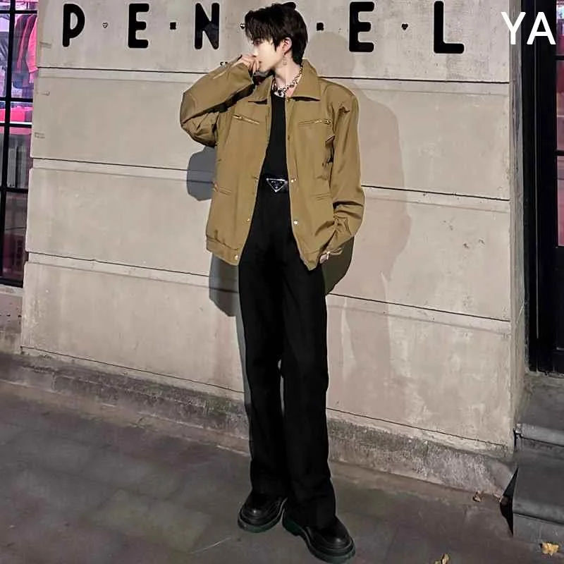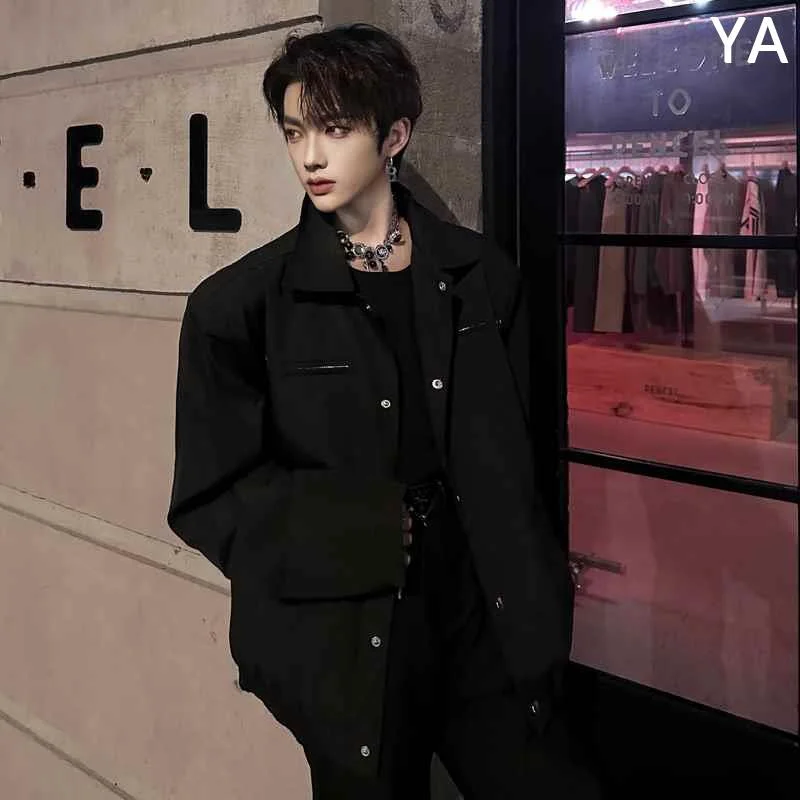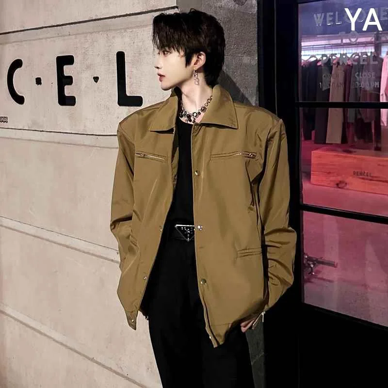 秋季暗黑高级感痞帅工装夹克男垫肩复古短设计感廓形上衣外套新款