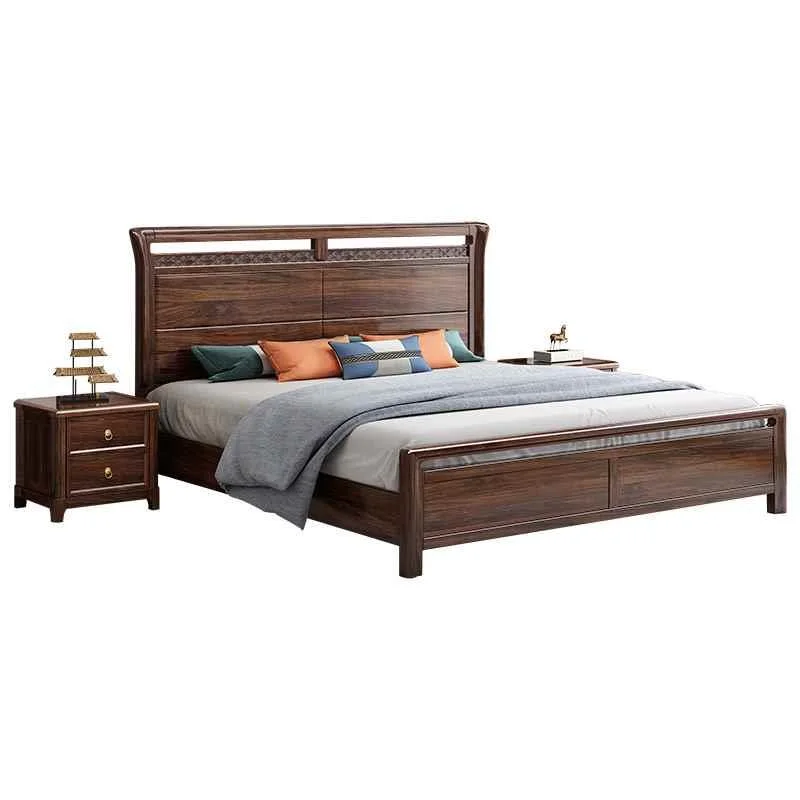 新中式全乌金木全实木床家用1.8米大床1.5储物双人主卧婚床W9新品