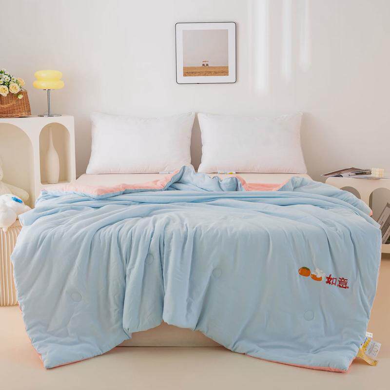 夏季新款家用水洗棉薄被子夏凉被纯色不易皱可机洗优美品质大薄款