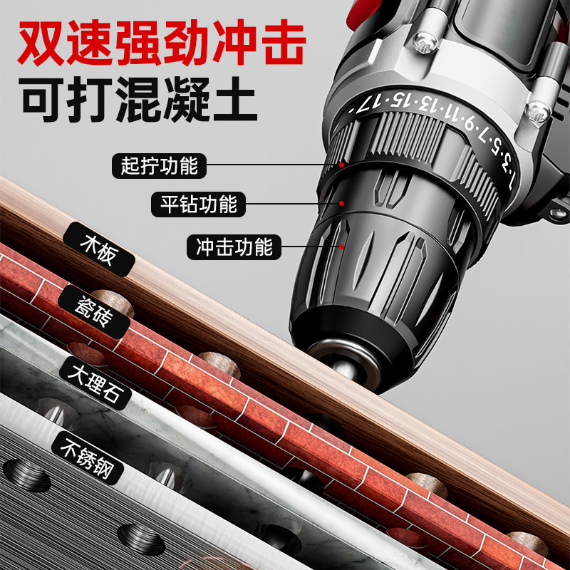 手电钻冲击钻转家用小手枪钻锂电工具多功能电锤充电式电动螺丝刀