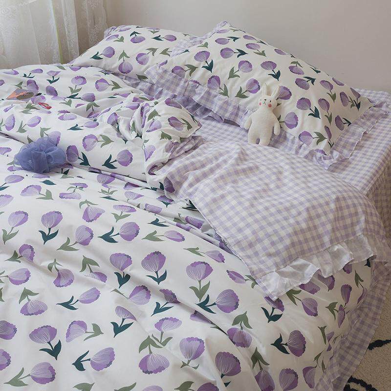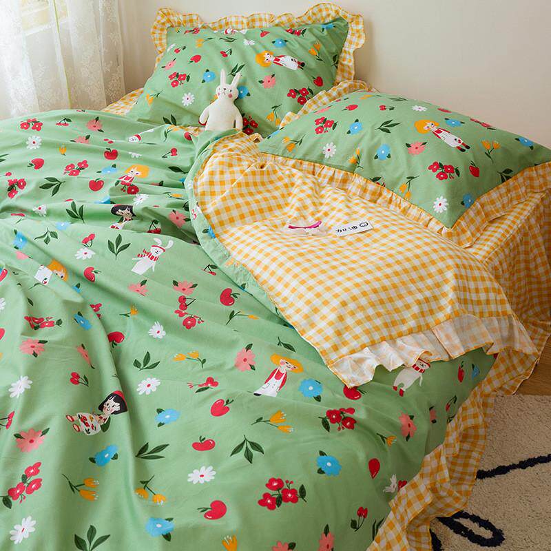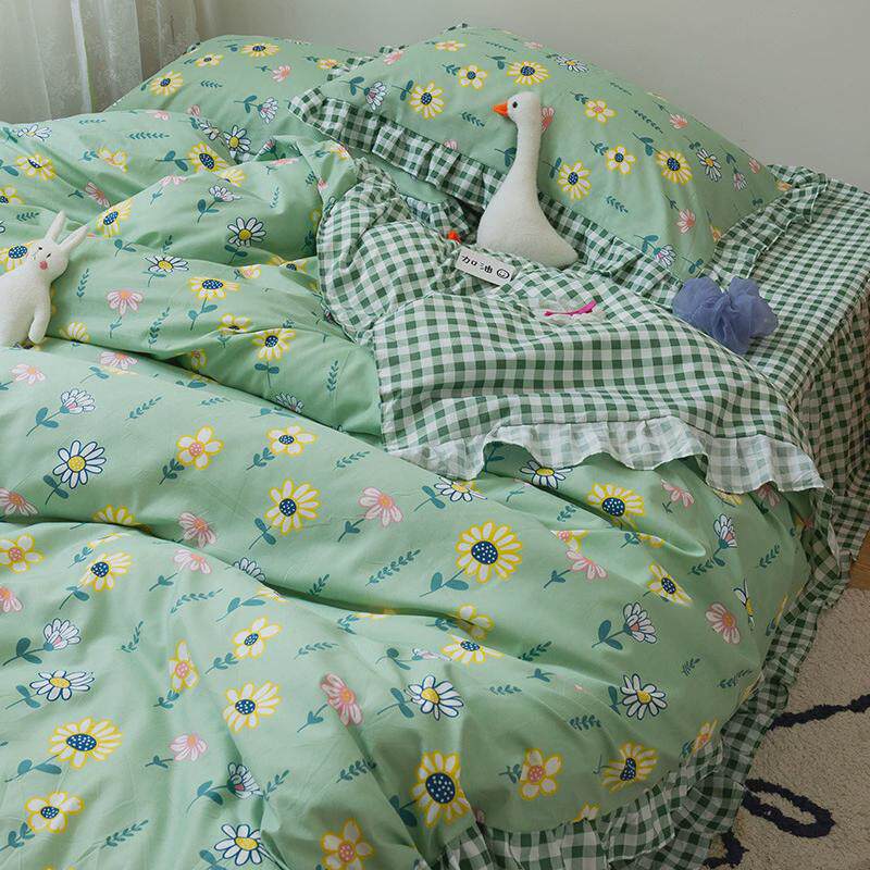 四件套韩版小花边磨毛新款公主风三件套单双人床单被套女学生家用