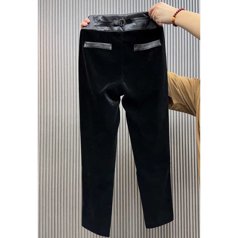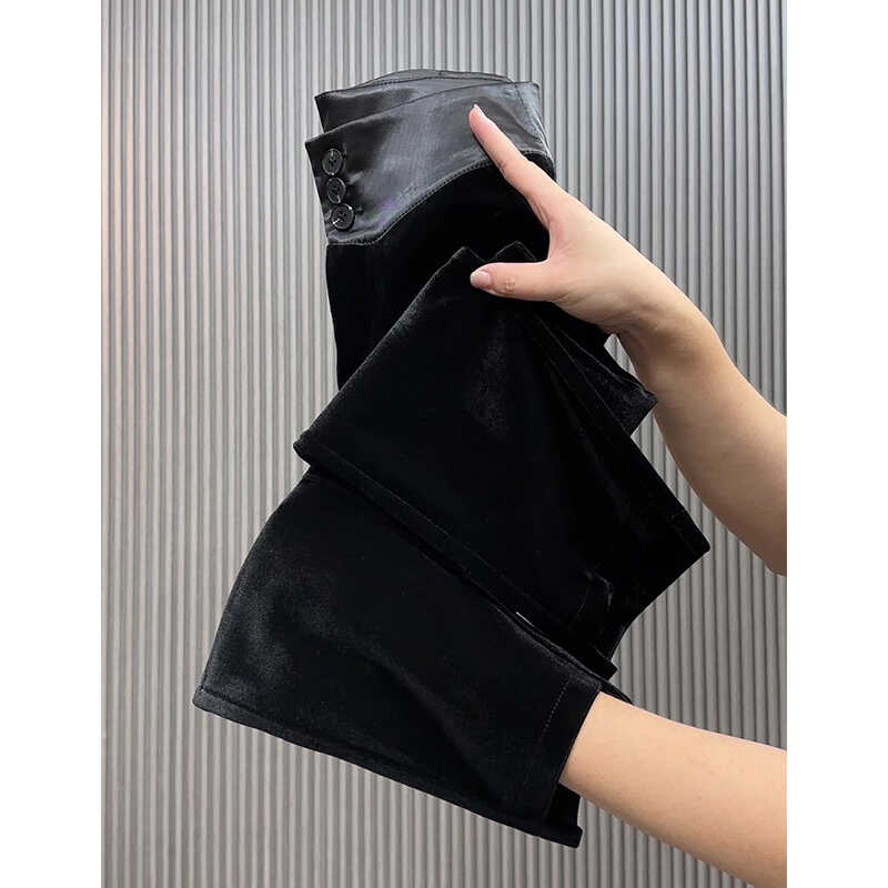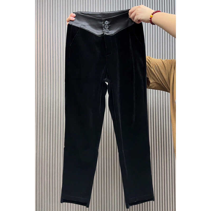 金丝绒直筒裤女2024秋季新款高腰显瘦小个子九分烟管裤休闲西装裤