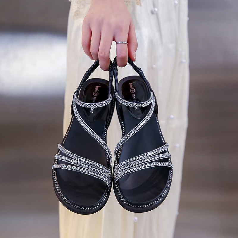 夏季新款232-39凉鞋平底水钻外穿一字带软底防滑百搭
