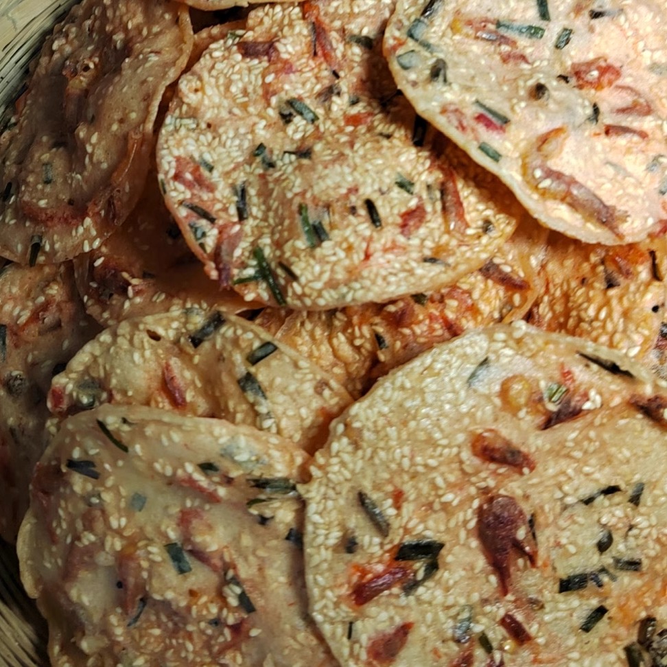 江西赣南特产美食虾米月亮巴土特产铁勺饼锅巴豆巴花生巴油炸小吃