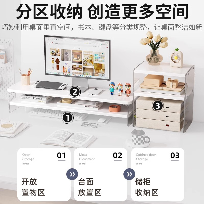 电脑台式显示器增高架办公室桌面亚克力抬高屏幕支架子悬浮置物架
