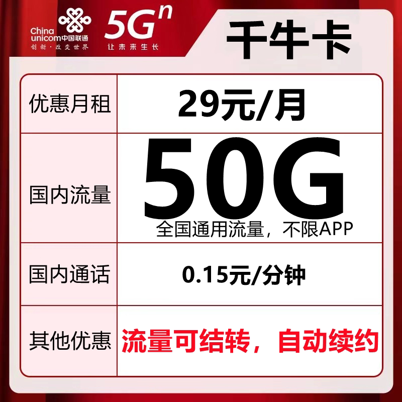 四川联通电话卡手机卡流量卡成都联通流量卡全国通用可选号学生卡