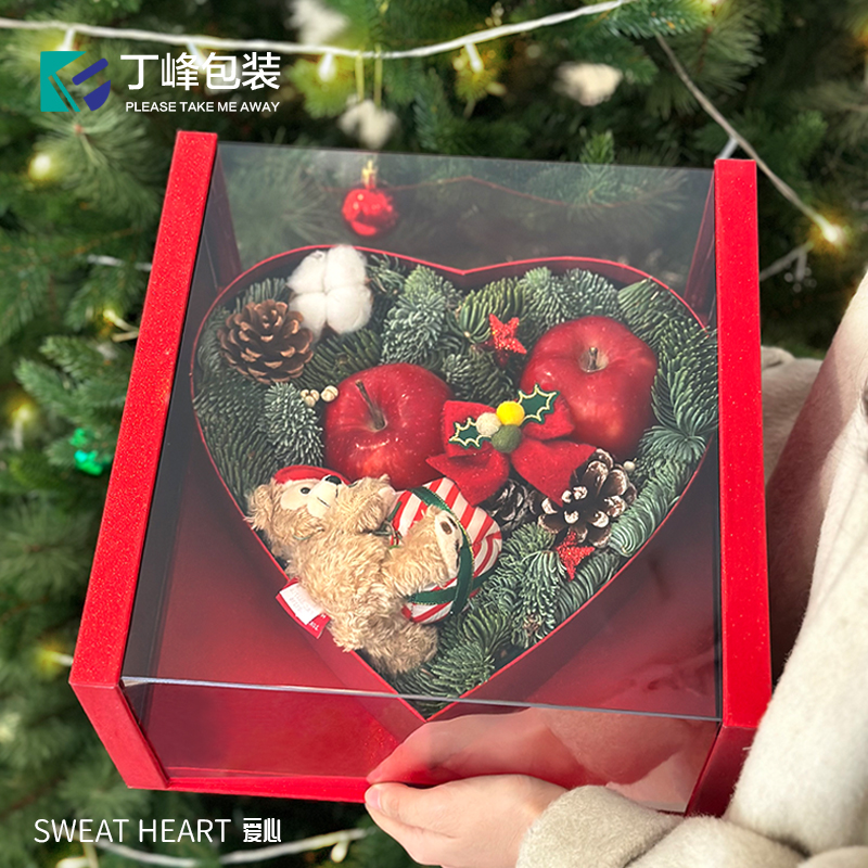 丁峰大号透明仿压克力天心盒高透爱心形鲜花包装盒水果情人节礼盒