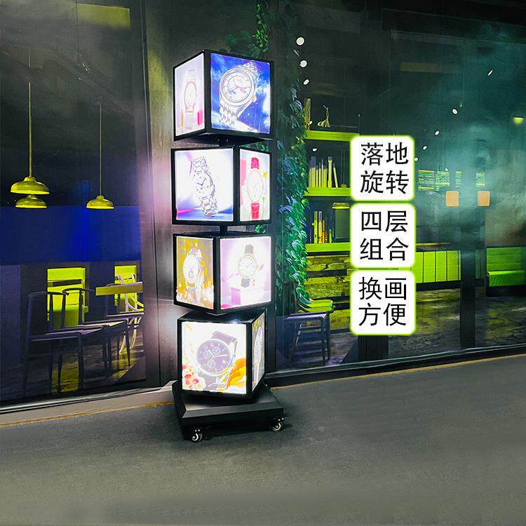立式灯箱广告牌 菜单展示户外落地led发光移动招牌滚动旋转展示牌