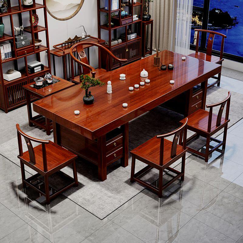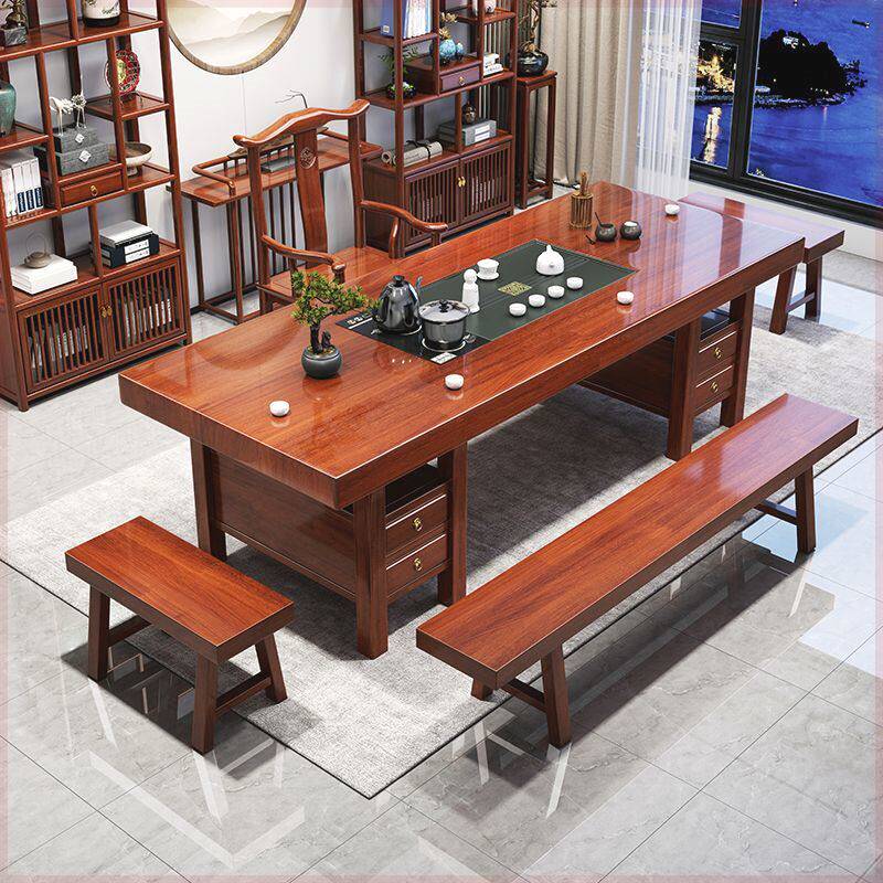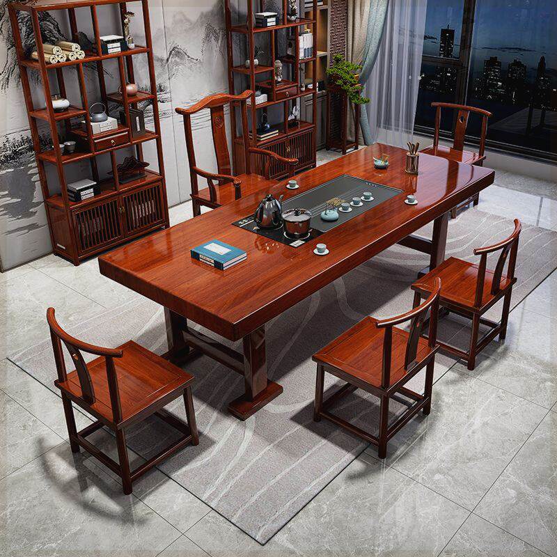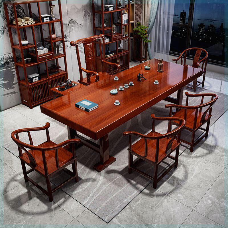 实木原木大板茶桌椅组合一桌五椅新中式茶几办公室家用禅意泡茶桌