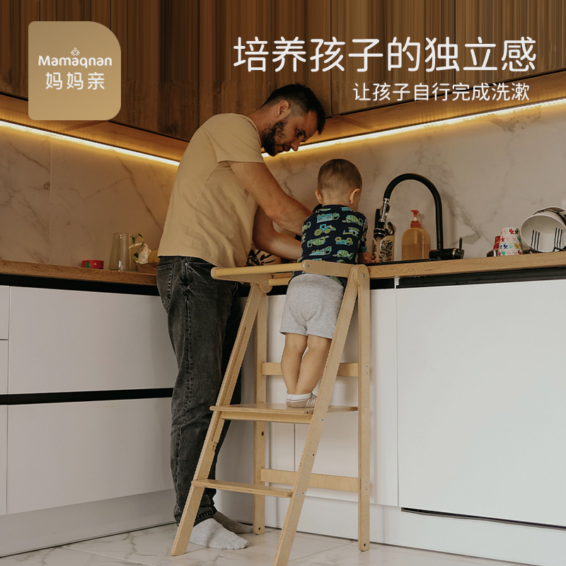 儿童洗漱台阶踏脚凳宝宝踩脚凳学习塔站凳带扶手防滑实木可折叠