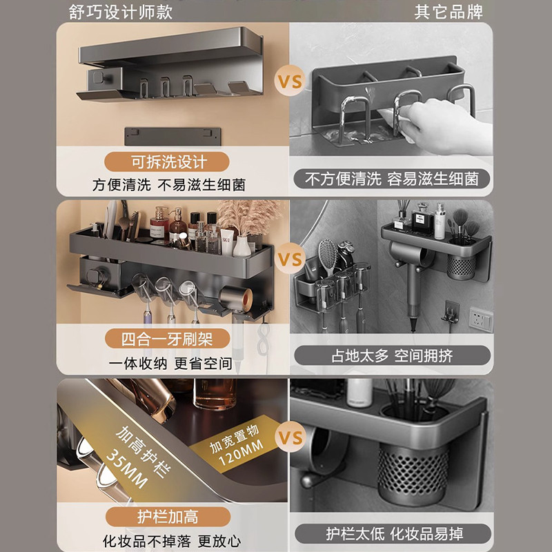 电动牙刷置物架吹风机支架免打孔壁挂式可拆洗卫生间漱口牙杯架子