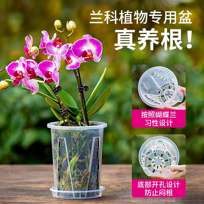 蝴蝶兰专用花盆兰花水苔树皮透明控根生根塑料盆