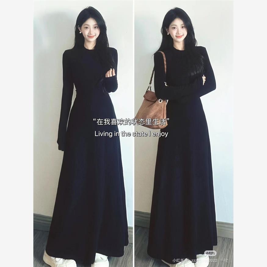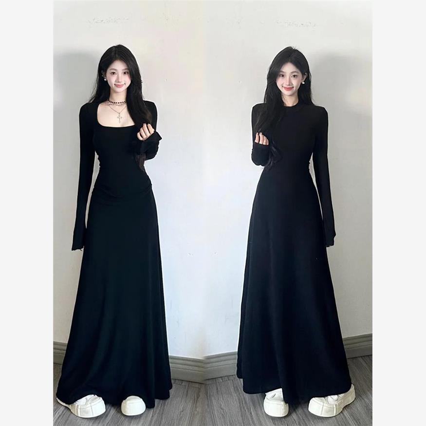 [270g棉拉毛]2024秋季修身长裙女腰修身Look方领优雅针织裙