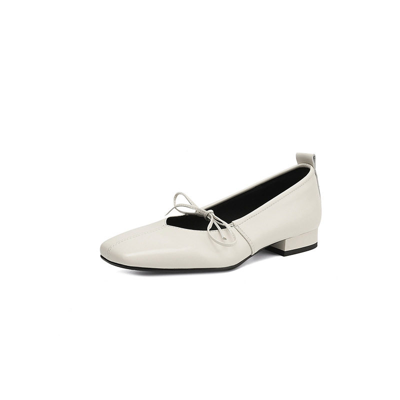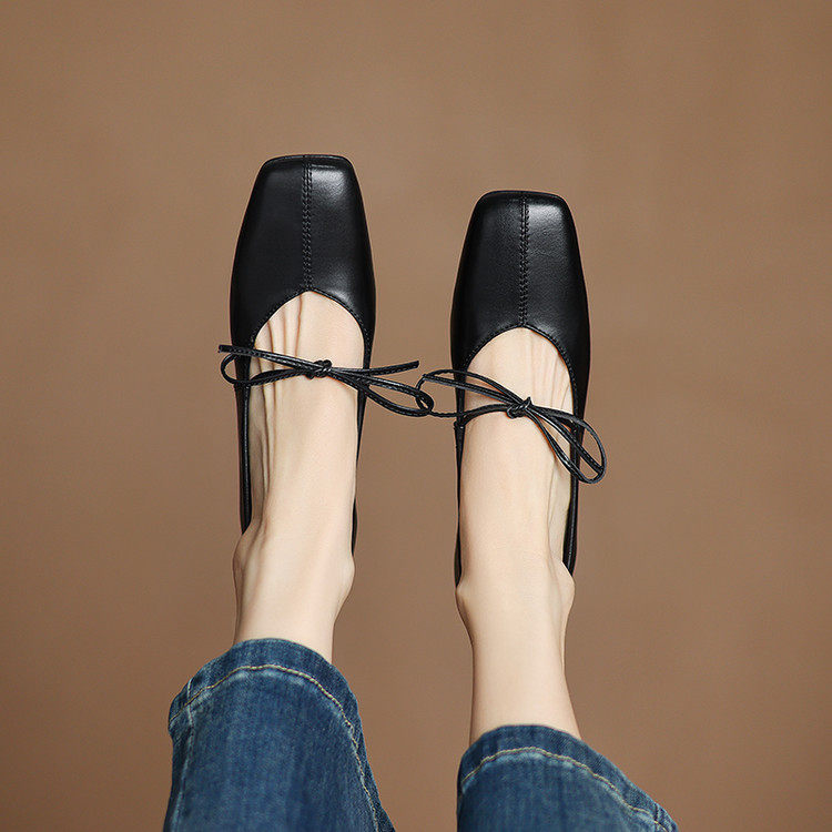 2025春季方头里外全皮女鞋简约大气敲软舒适蝴蝶结可踩跟浅口单鞋