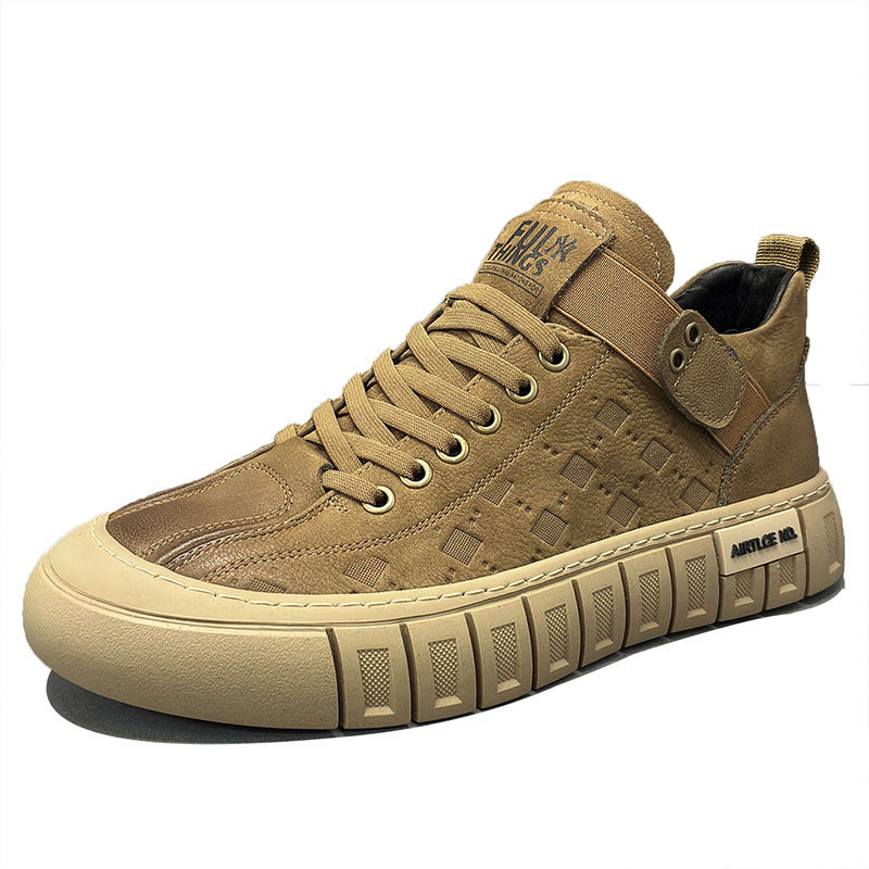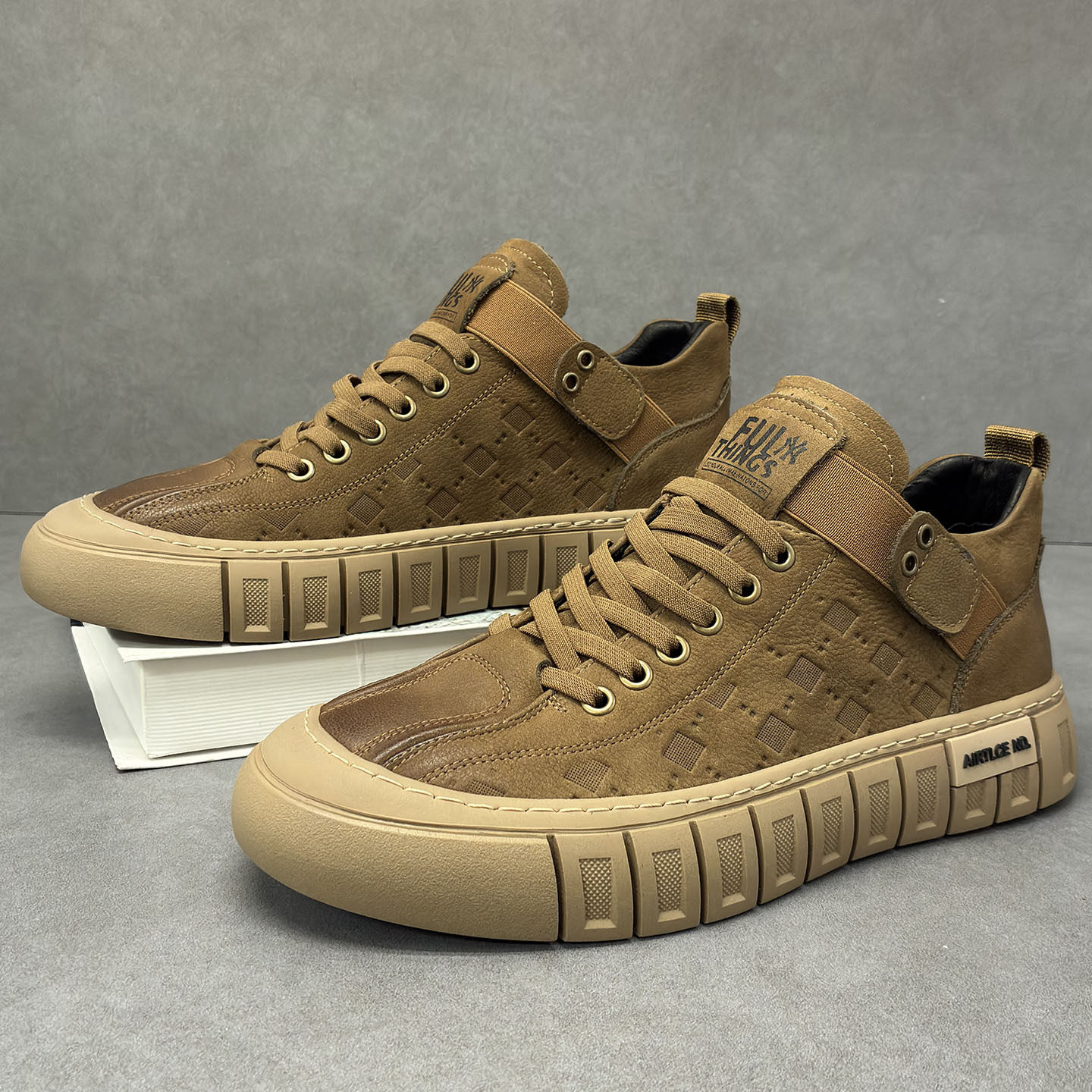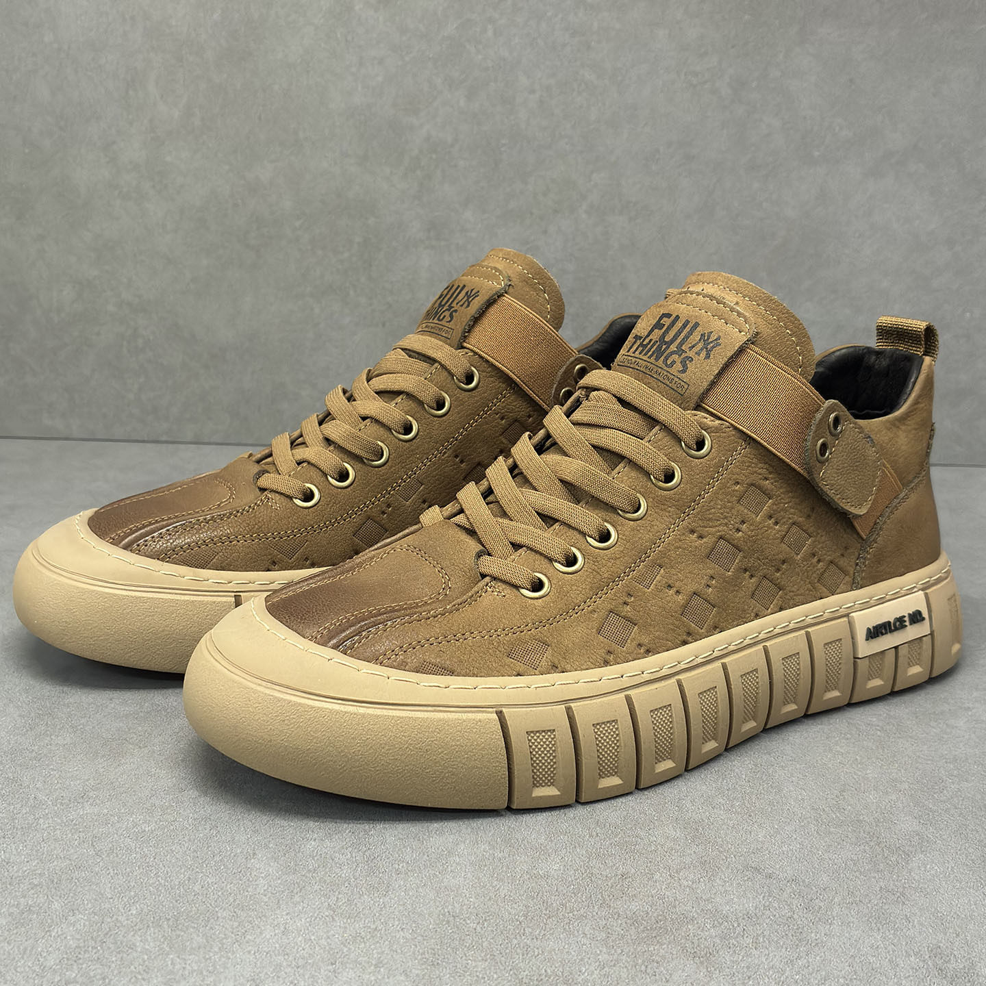 高端男士2025冬季新款男鞋真皮休闲鞋加绒保暖厚底板鞋高帮马丁靴