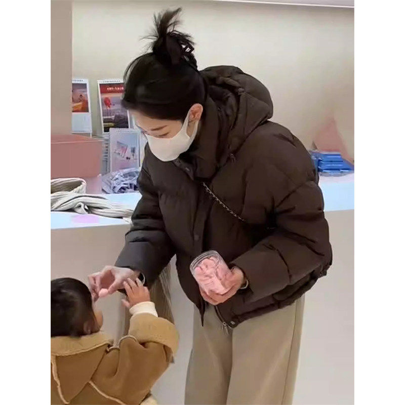 美拉德咖色短款小个子连帽棉服女冬季2025新款洋气网红款加厚外套