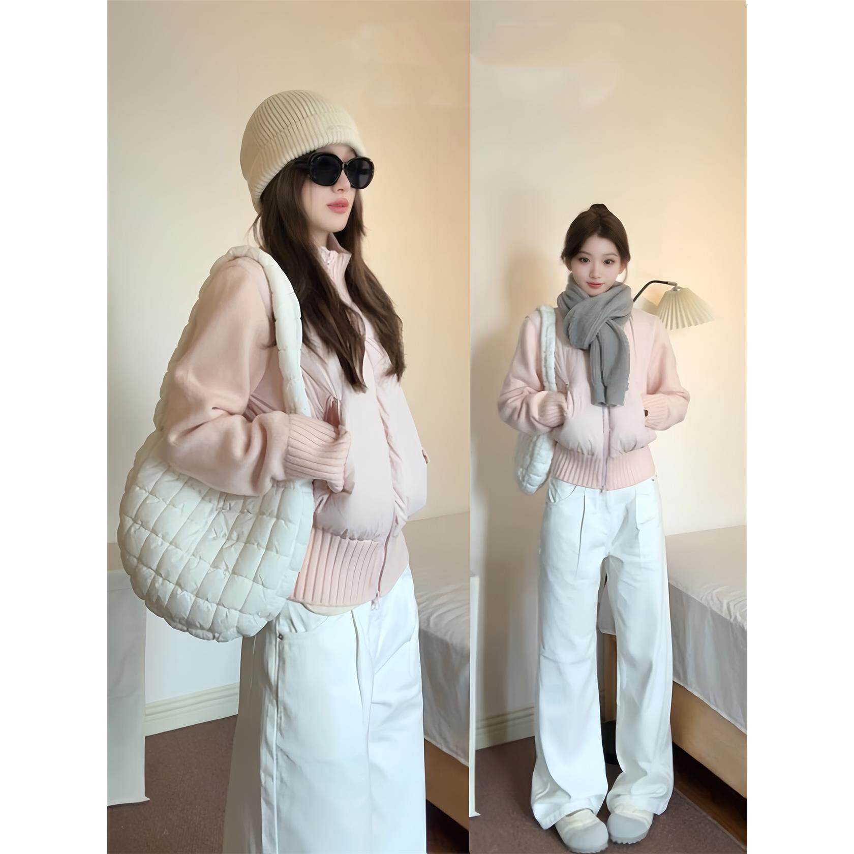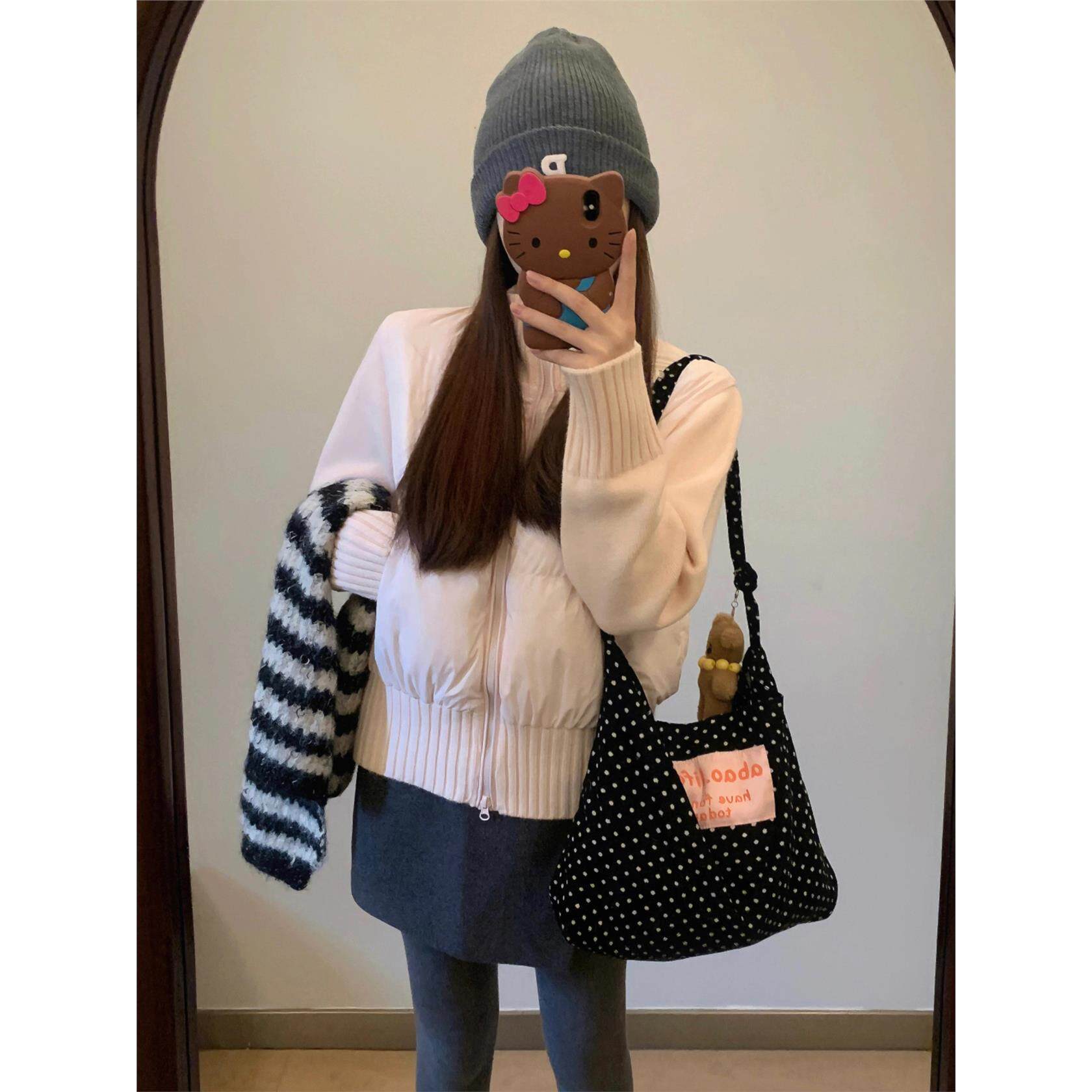 棉服女款冬季2025年新款针织袖拼接棉衣韩系超好看小个子棉袄外套