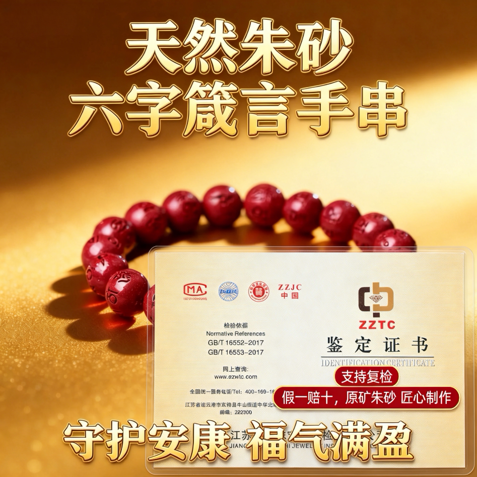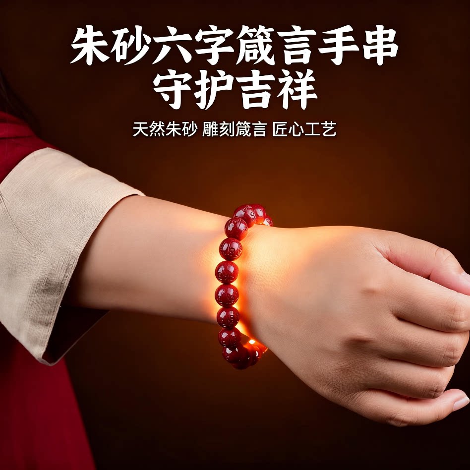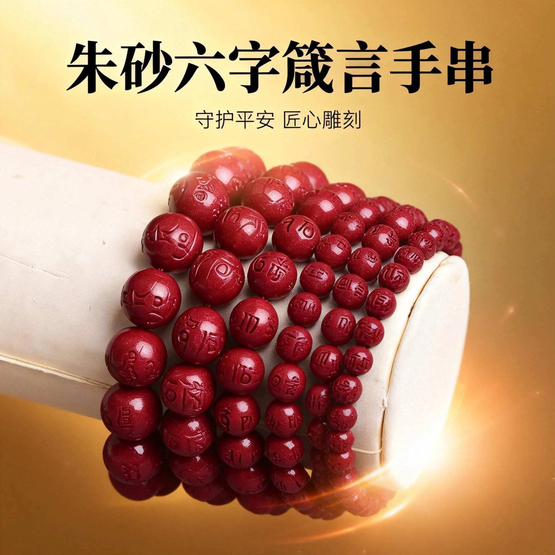 天然朱砂紫金砂六字箴言手串本命年高含量男女款手链本命年转运珠