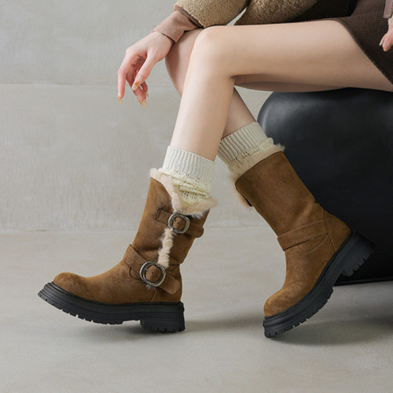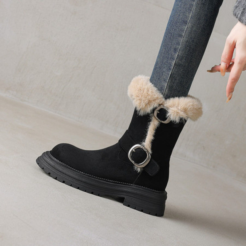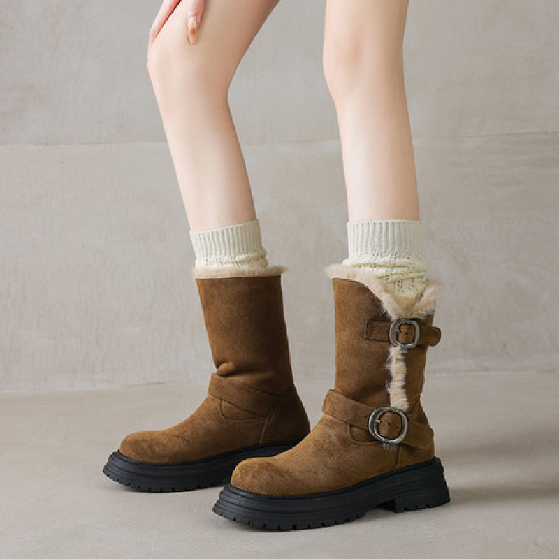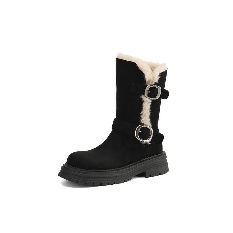 5CM~小个子增高厚底雪地靴女2025秋冬新款圆头皮带扣加厚保暖短靴