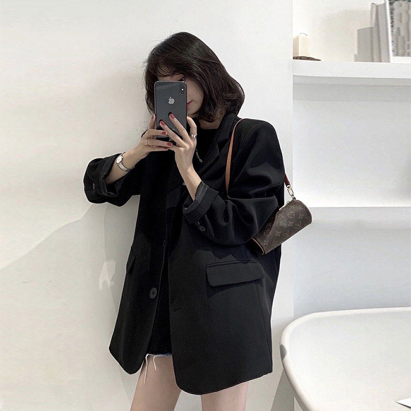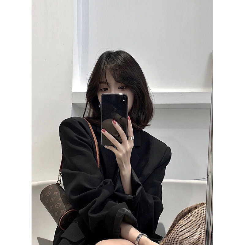 高级感黑色西装外套女2025年春秋新款韩版宽松小个子西服套装上衣